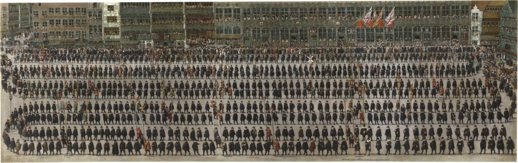 Con los Habsburgo (y especialmente en la época de Carlos V), Bruselas vuelve a estar en una primera línea política. Pero el siglo XVI trae una fractura decisiva: la Reforma protestante, las guerras de religión y la rebelión de las Provincias Unidas. Mientras el norte acaba separándose (lo que hoy asociamos con Países Bajos), Bruselas queda en la órbita de los Países Bajos españoles.