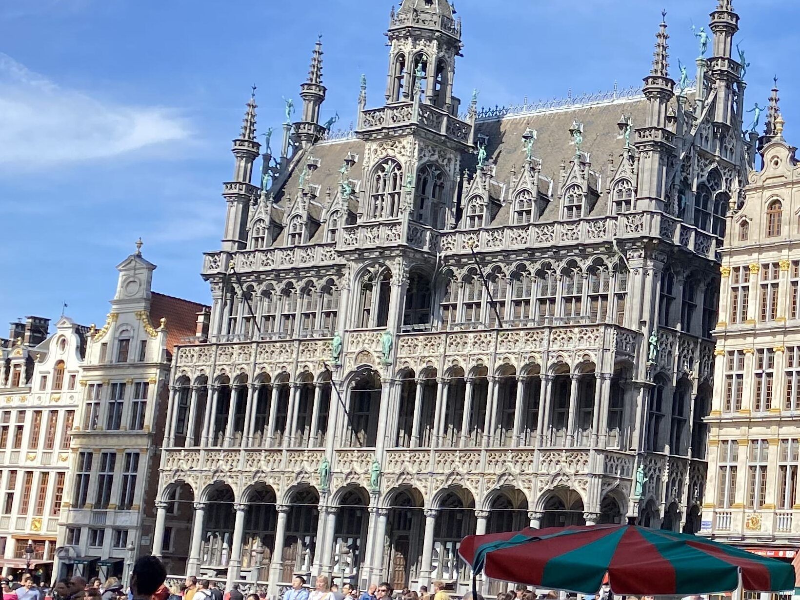 Lo que vemos hoy es su gran reconstrucción neogótica del siglo XIX (1874–1896), dirigida por el arquitecto Victor Jamaer, que quiso recuperar una imagen gótica “ideal” para la plaza. La fachada es pura filigrana: arcos y galerías, una torre central que remata el conjunto, un ritmo de pináculos que dibuja el cielo y una piel de piedra cargada de escultura; incluso hay referencias explícitas a Carlos V (por ejemplo, una figura suya en la torre) y una colección de detalles que se disfruta mejor acercándote y “leyéndolos” como si fueran un cómic de símbolos (figuras, escudos, ornamentación). Hoy, además, el edificio alberga el Brussels City Museum, donde hay una incomparable colección de lozas y porcelanas bruselenses, además de albergar la galería de trajes del “Manneken-Pis” del que hablaremos más adelante.
