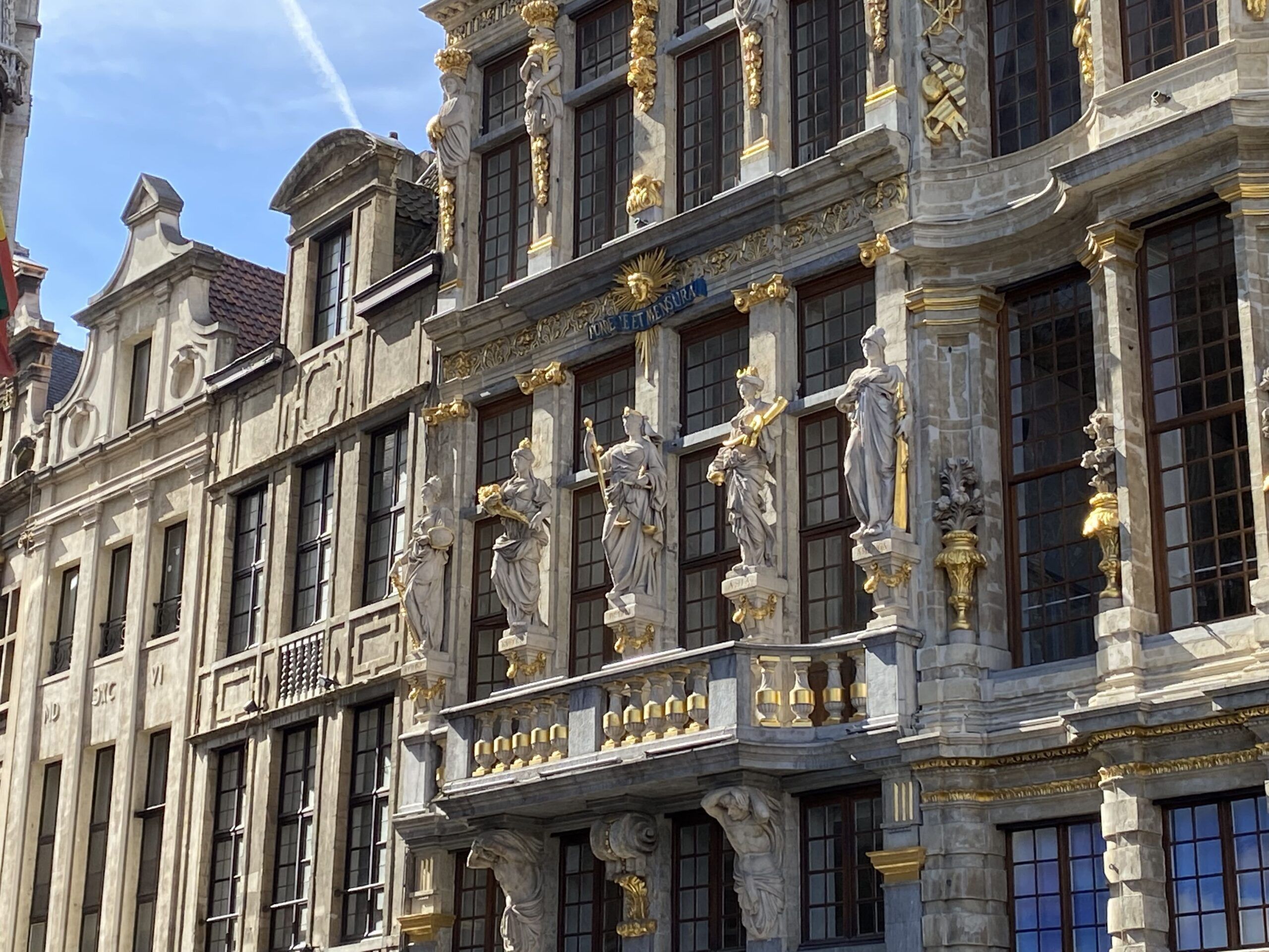 Como he comentado anteriormente, uno de los aspectos más característicos de la plaza son las casas gremiales, reconstruidas en fechas posteriores a 1695. Ya hemos visto que este tipo de edificios en plazas o zonas centrales de las ciudades importantes es algo típico en Bélgica, en particular, lo hemos visto en artículos de Gante y Amberes. En Bruselas, también llaman la atención por su estructura, estética e historia. Cabe destacar que en los edificios no solían poner letras sino figuras o santos, debido a la baja alfabetización. A continuación, paso a comentar algunas de ellas: