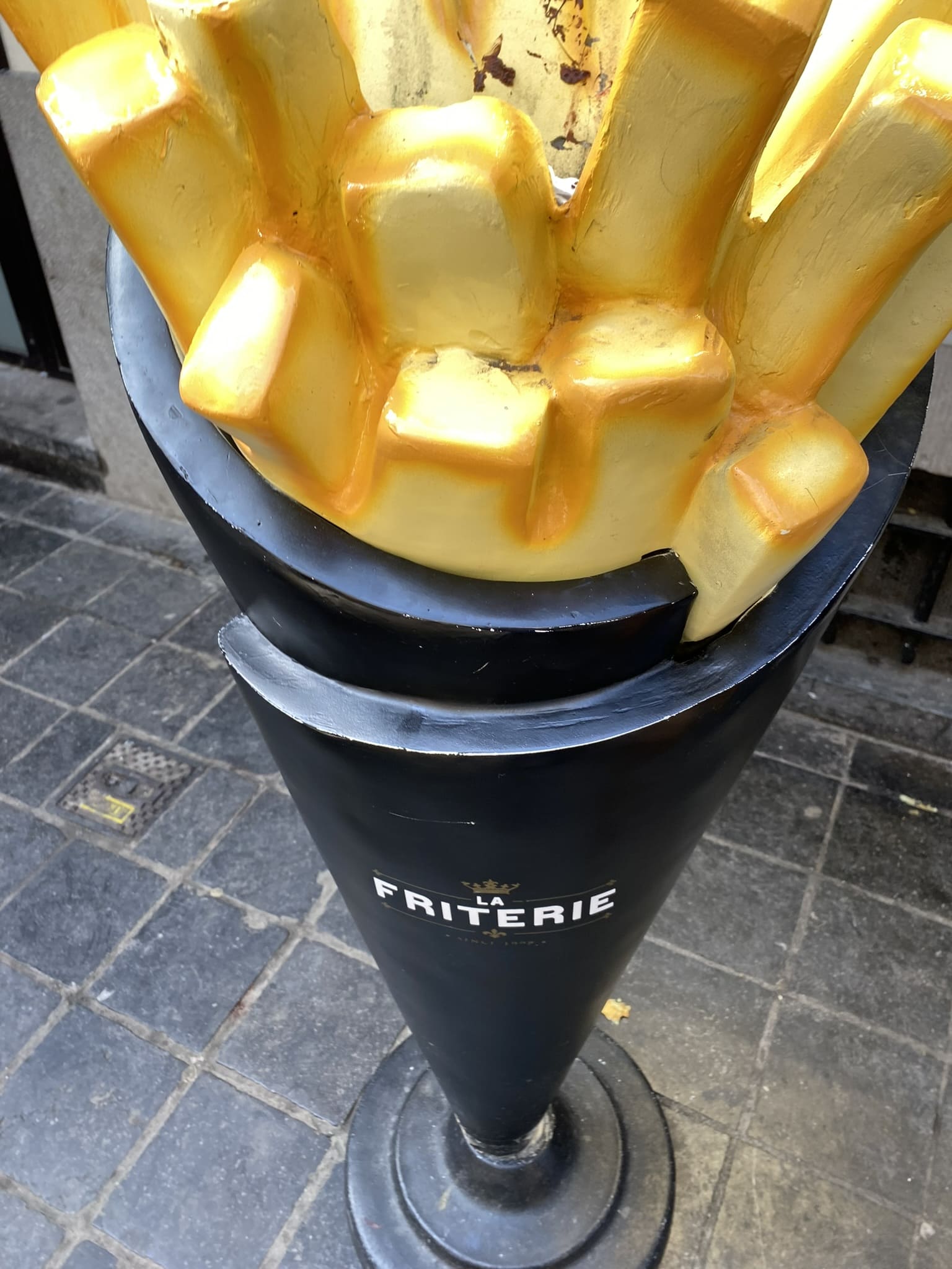 Como he comentado en algún otro blog de ciudades belgas, las patatas fritas son casi un asunto “de disputa” cultural entre Bélgica y Francia. En Bélgica se defienden como algo propio —las frites— y suele citarse la historia del valle del Mosa, cerca de Namur: en inviernos duros, cuando no se podía pescar, la gente habría empezado a freír patatas como sustituto del pescado. Aun así, esa explicación no es indiscutible y hay historiadores que la cuestionan, así que no puede presentarse como un origen totalmente probado.