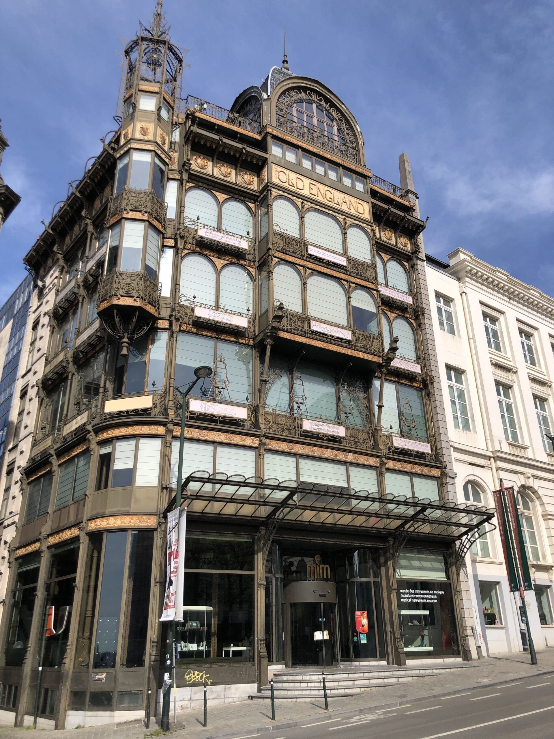 Siguiendo el recorrido, cabe pararse unos minutos para apreciar un colorido museo. Es el edificio del MIM (Museo de Instrumentos Musicales), el antiguo almacén Old England. Ojo con la etiqueta: no es art déco, es art nouveau (finales del XIX). Se levantó en 1899 y lo diseñó el arquitecto belga Paul Saintenoy, usando una estructura de hierro/acero y grandes paños de vidrio para inundar el interior de luz, como un escaparate vertical.