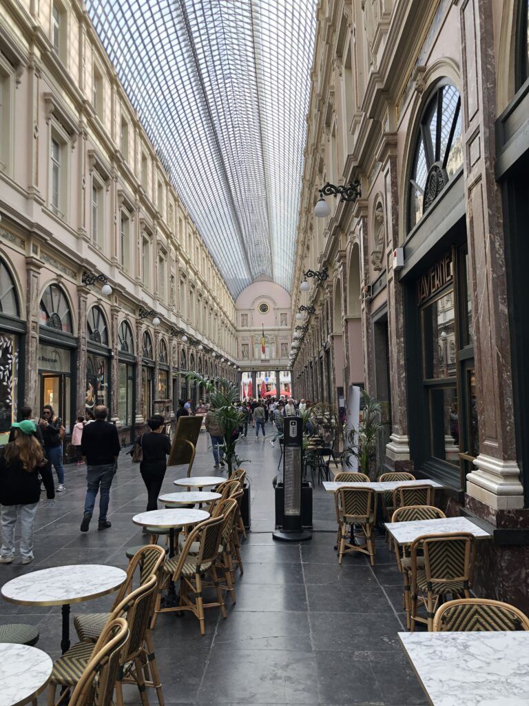 Y luego está lo que hace que se recuerden por otros sentidos: lo que pasa dentro. Las galerías están llenas de comercios que, en Bruselas, son casi una religión: chocolaterías, confiterías, boutiques, librerías, joyería… y cafés que te ofrecen un punto de pausa entre visitas.