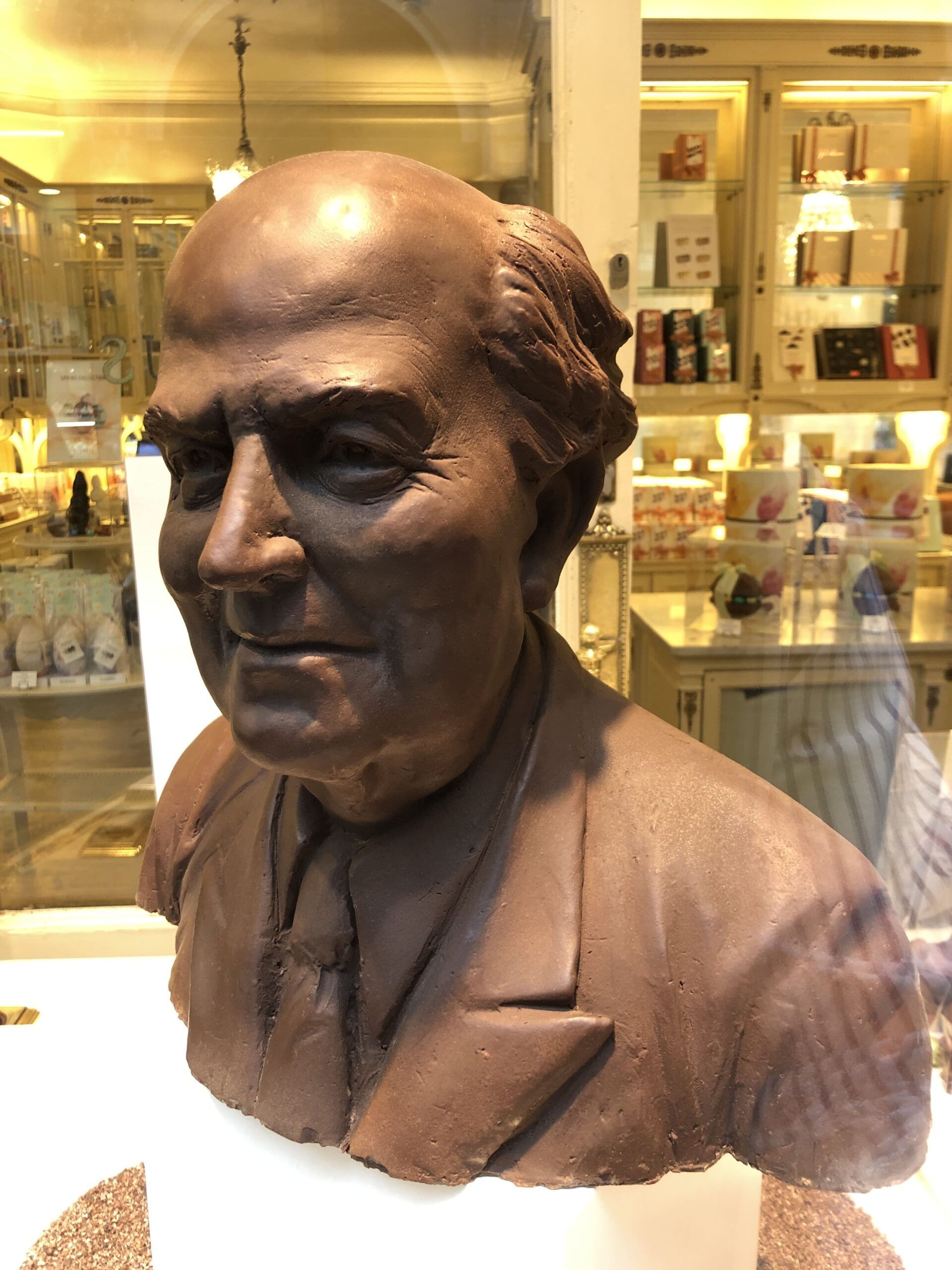 NeuhausTodavía conserva el aspecto de farmaciaEl busto de chocolate del fundador de NeuhausMary Chocolatier