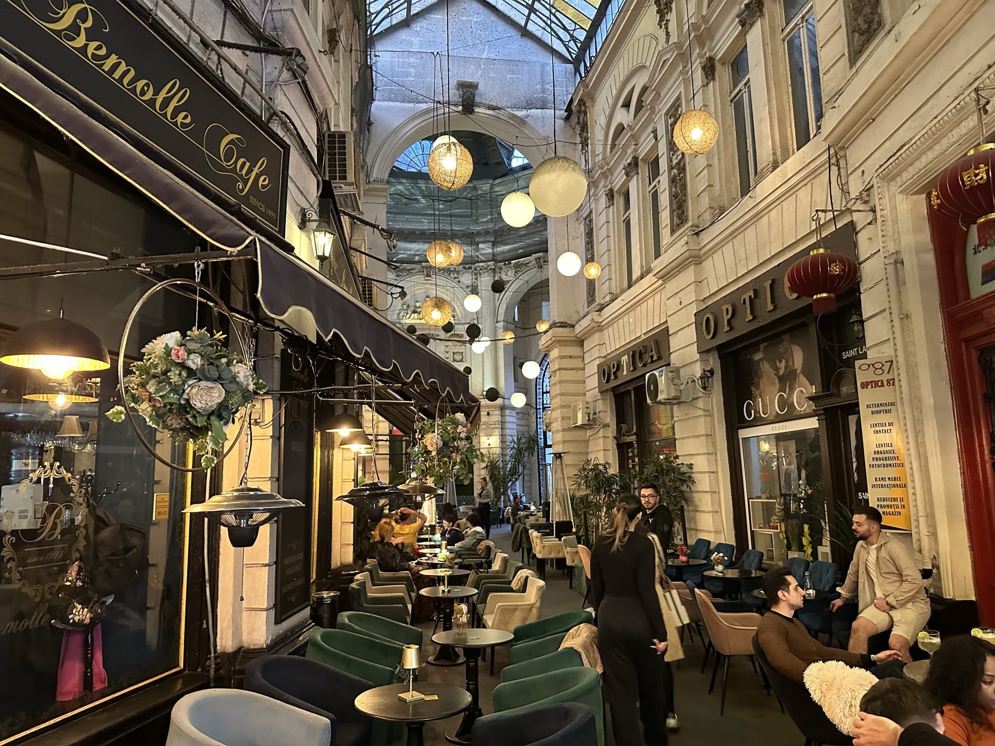 El diseño neoclásico con columnas corintias, el ambiente bohemio y los cafés bajo techo hacen que te sientas en un rincón de París… pero con alma rumana. En tiempos comunistas, se llamó “Pasajul Bijuteria (joyería)”. Hoy, es perfecto para tomar un café con carrito, protegido del sol o la lluvia.