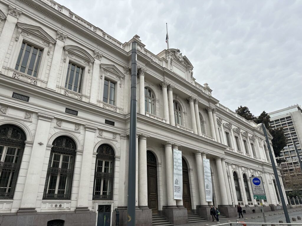 A solo unas calles, en la calle Compañía, se encuentra la Biblioteca del Congreso Nacional de Chile, creada en 1883 para servir como apoyo técnico y documental al Parlamento. Pero su importancia fue mucho más allá de la simple función legislativa: durante décadas, la biblioteca fue un punto de encuentro entre la política, la educación y la historia nacional. Sus estanterías guardaban los primeros registros de leyes, discursos, constituciones y diarios de sesiones, convirtiéndose en un archivo vivo de la democracia chilena.