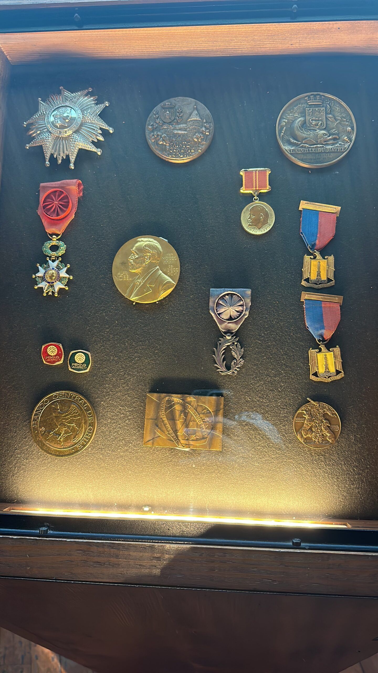 Por último, destaco la biblioteca (aunque gran parte de sus libros no se encuentran allí) donde se pueden observar cartas de su puño y letra, o poemas a máquina de escribir, medallas y distinciones, y en particular la medalla de oro de Alfred Nobel, conmemorativo del merecido Premio Nobel de literatura que recibió el poeta en 1971.