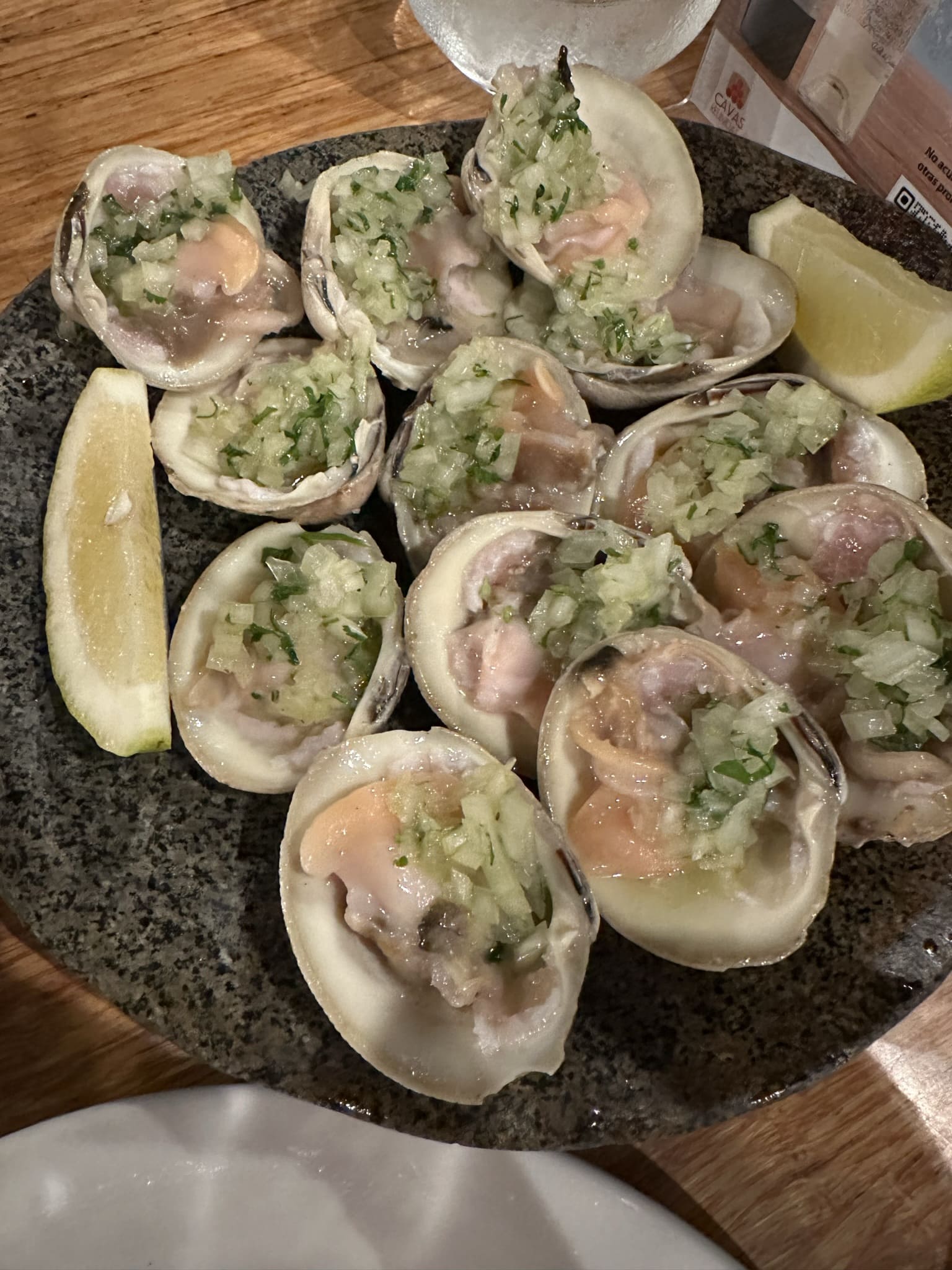 Como anécdota, recordamos nuestra primera noche en la ciudad, cuando cenamos en Squella, un clásico restaurante marisquero. Probamos almejas crudas y pata de pulpo, mientras unos mariachis contratados por una mesa vecina celebraban un cumpleaños.