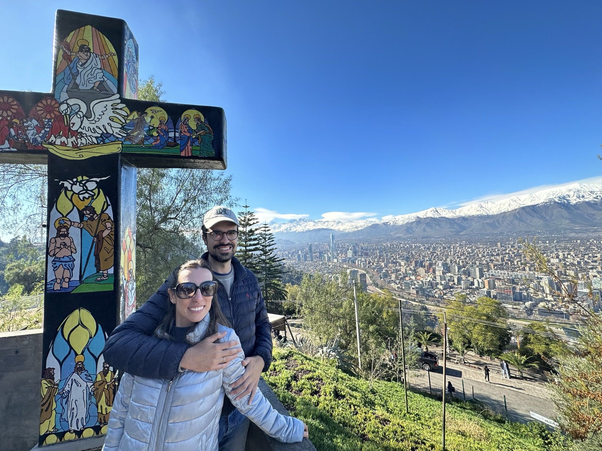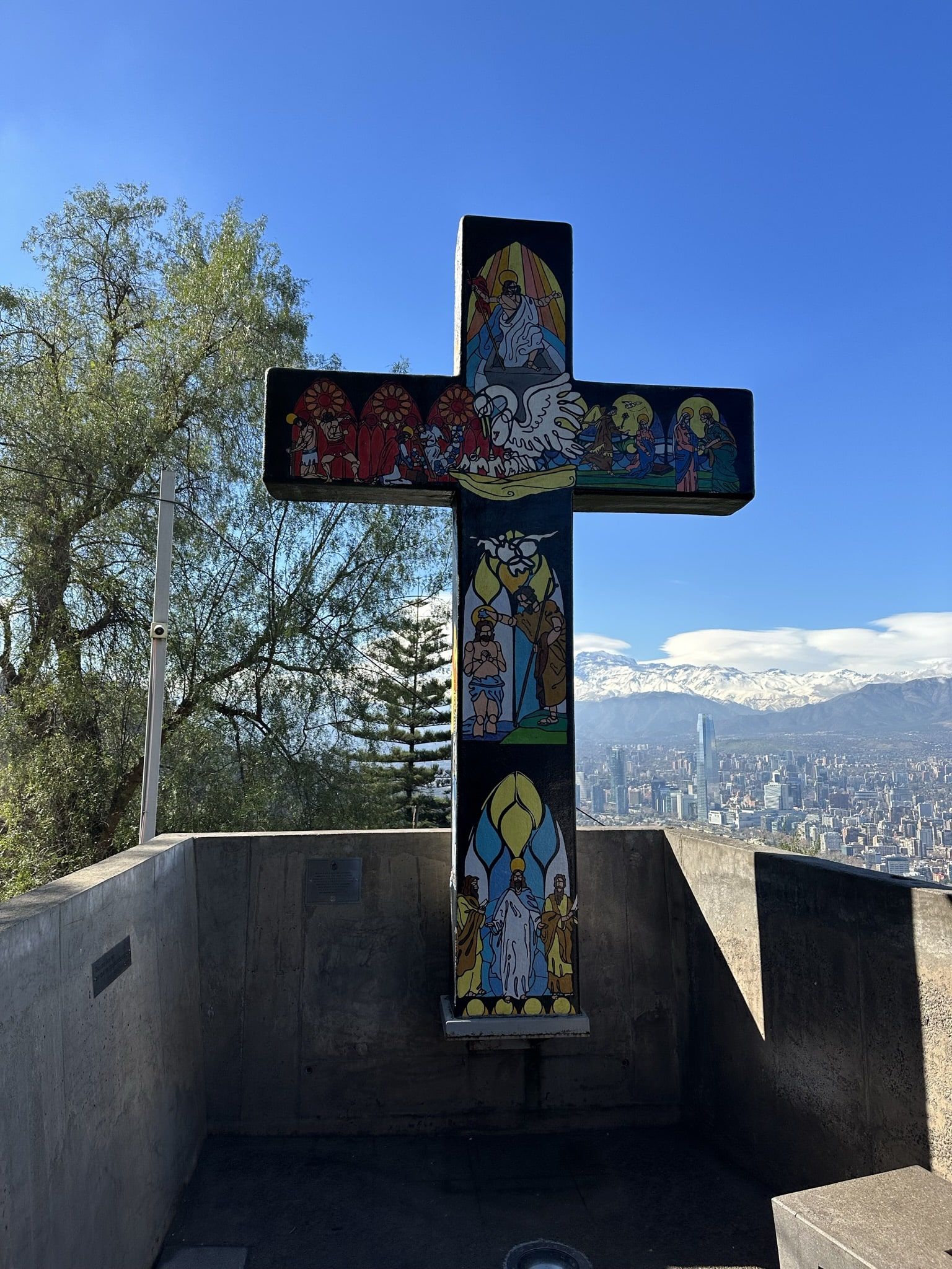 Desde la cima del cerro, la vista es simplemente inolvidable. Hacia el oriente, la Cordillera de los Andes se levanta majestuosa, con picos nevados que parecen flotar sobre la ciudad. Hacia el poniente, Santiago se extiende hasta perderse en una neblina dorada, y al atardecer, el cielo se tiñe de tonos rosados y violeta. Es el lugar perfecto para comprender la geografía de la ciudad: una metrópoli enorme pero rodeada de naturaleza por todos lados. En una de las capillas aprendimos sobre Santa Teresa de Jesús de los Andes, la primera santa chilena, y comprendimos por qué este cerro es un lugar tan especial para creyentes y viajeros por igual.