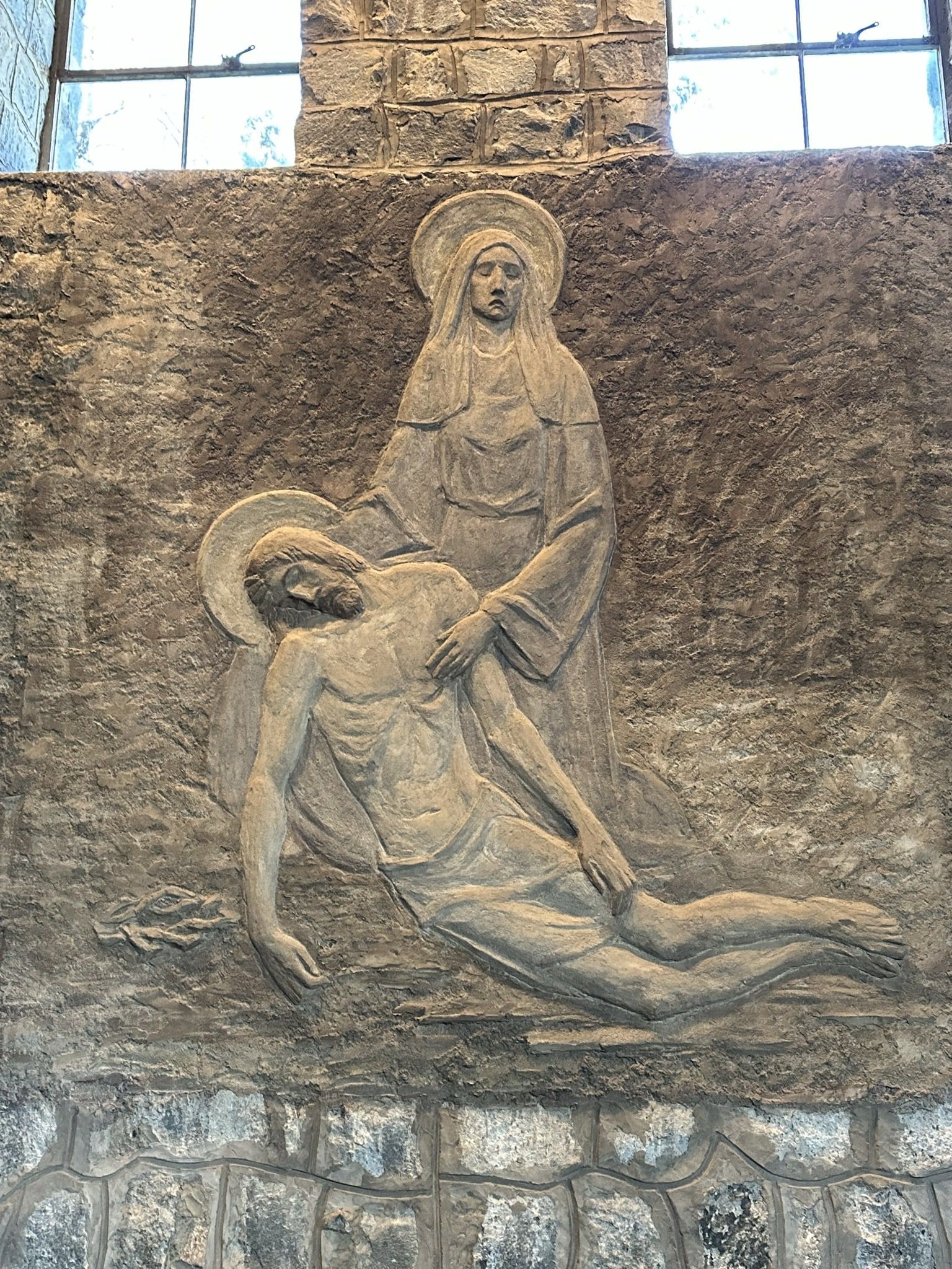 Casi en la cima se halla la Plaza Vasca, donde se levanta una pequeña iglesia adornada con mosaicos dedicados a la vida de la Virgen María.