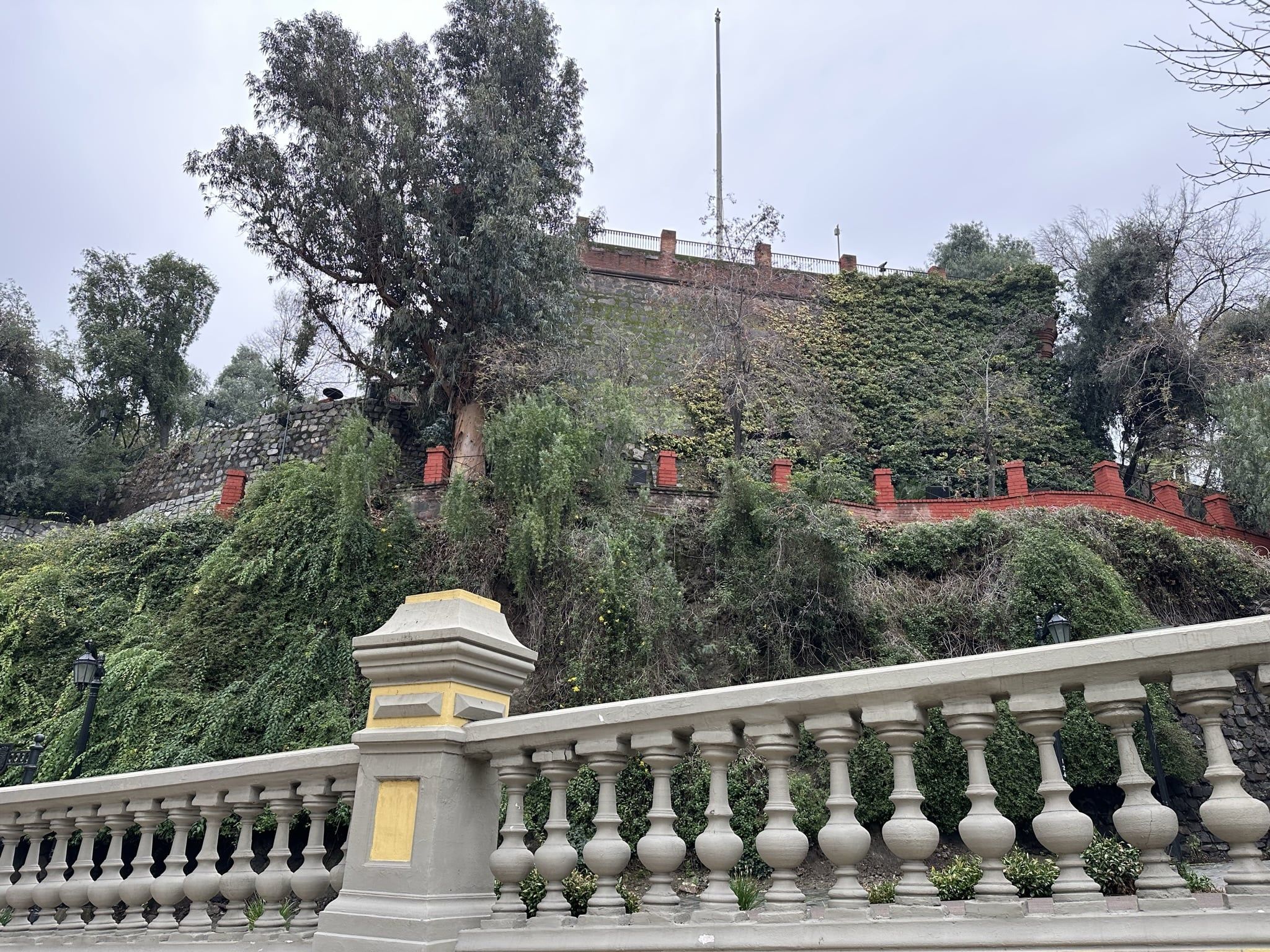El segundo día en Santiago comenzó algo nublado y aire fresco, siendo nuestra primera parada subir a uno de los lugares más emblemáticos de la ciudad: el Cerro Santa Lucía.