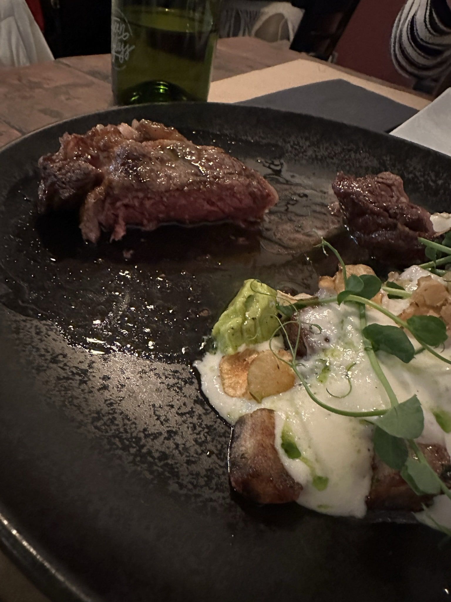 De comida, probamos un ceviche de corvina, un tiradito de lisa y un lomo vetado a la parrilla perfectamente sellado.