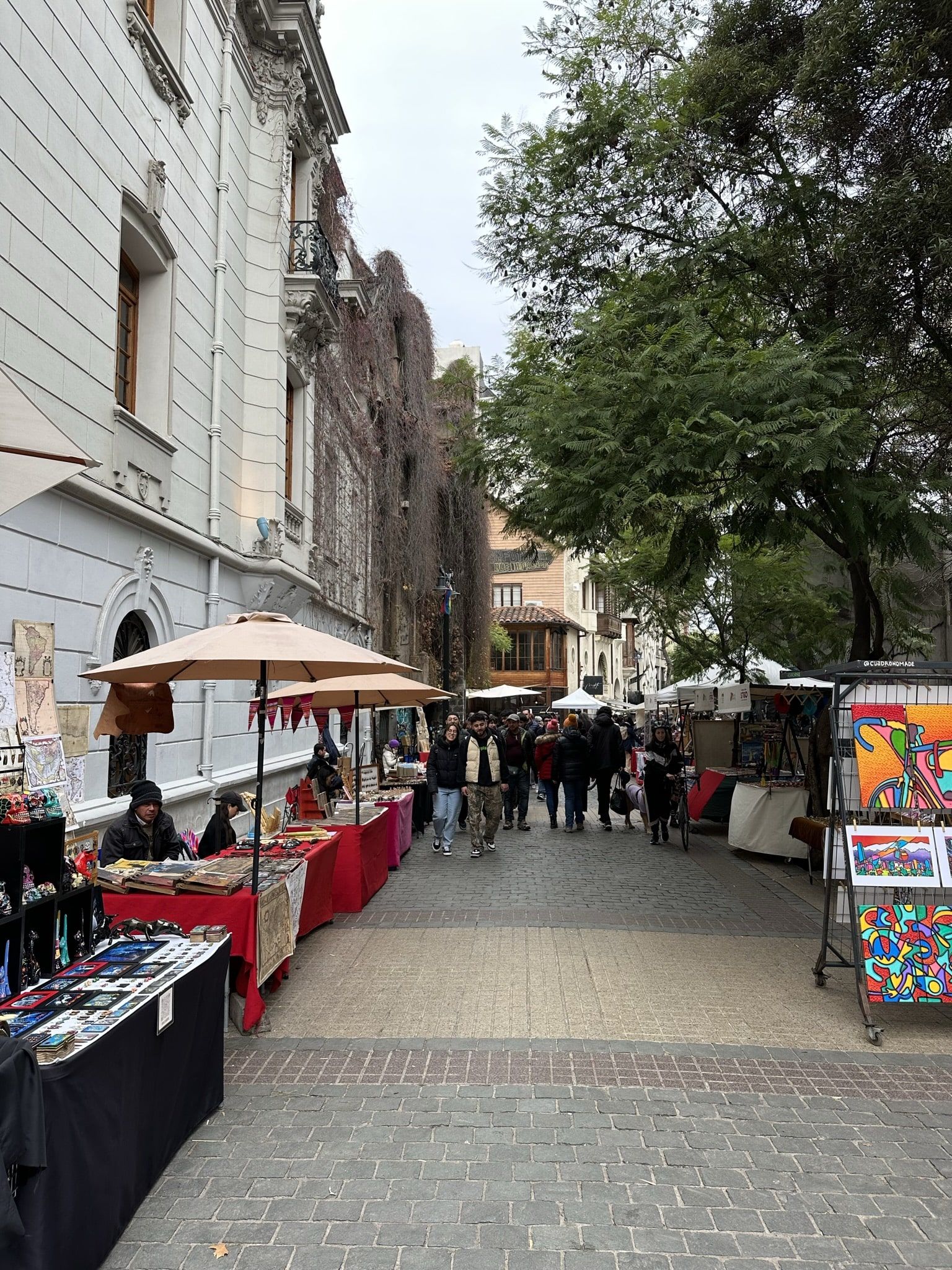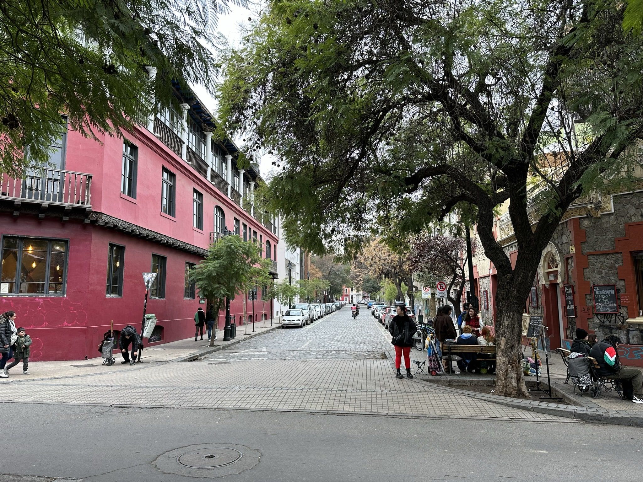El mediodía nos llevó al vecino barrio Lastarria, uno de los más elegantes y culturales de la ciudad. Sus calles empedradas están llenas de librerías, cines de autor y restaurantes con encanto.