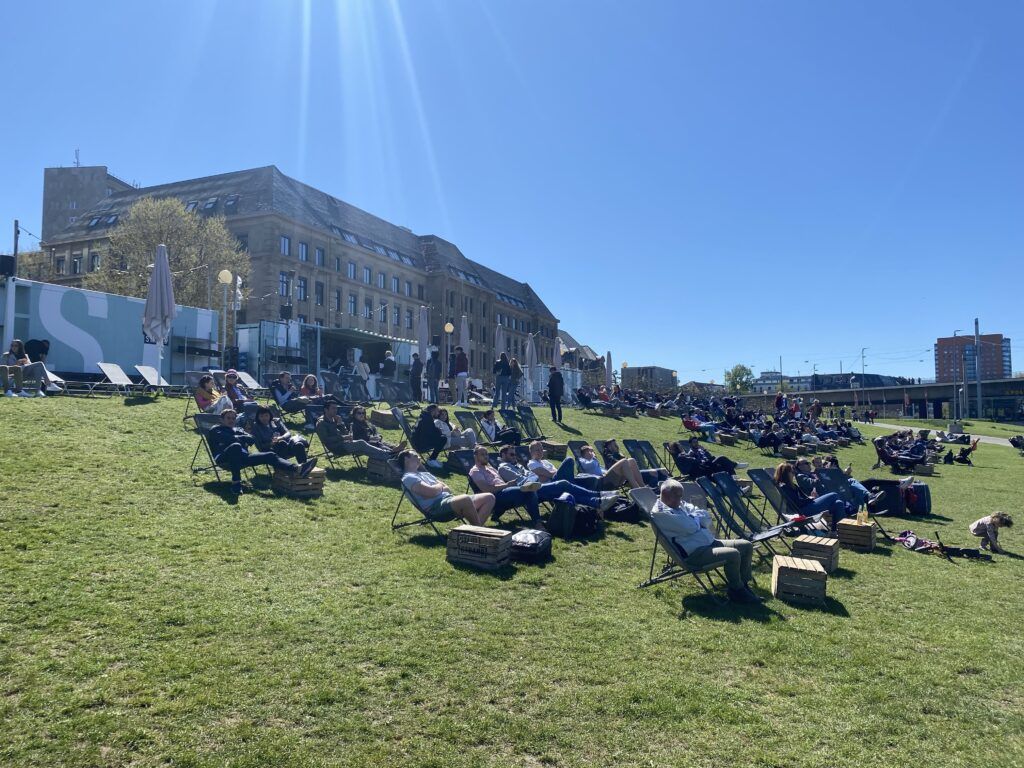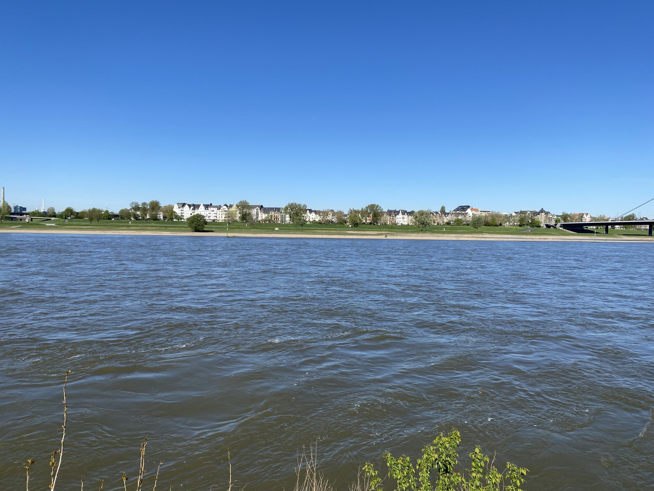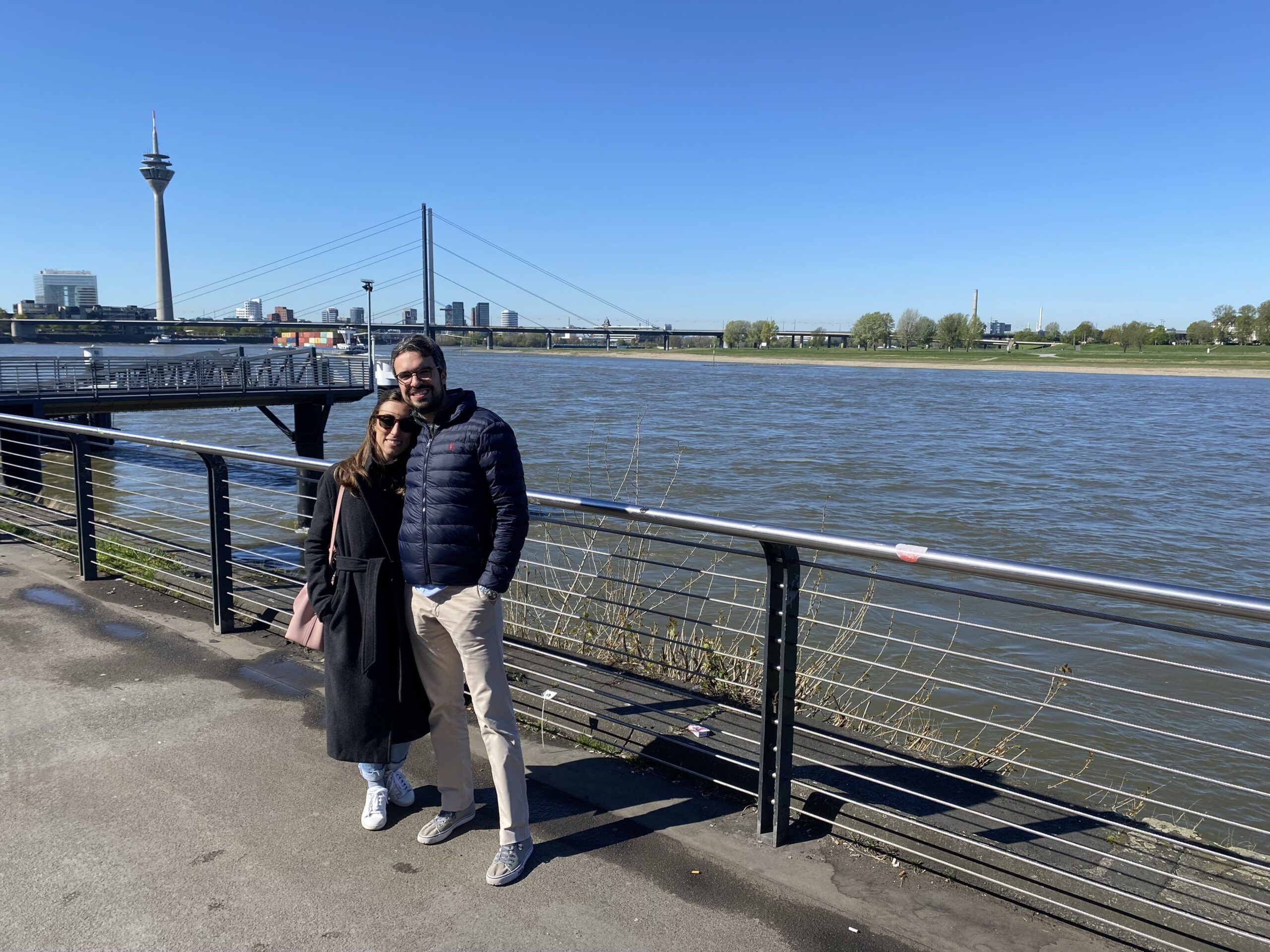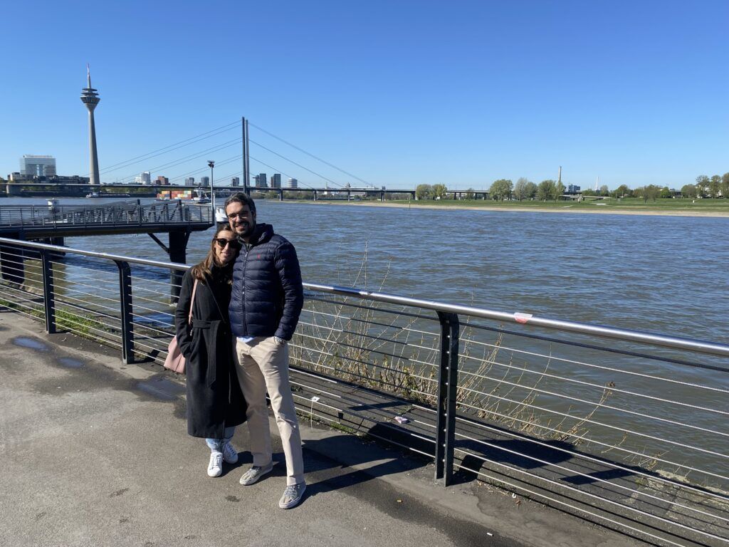 Para terminar la media jornada, volvimos al Rin y caminamos hacia la zona del Rheinturm (Rhine Tower). Si la mañana fue historia, esto es postal: el Rheinturm es el gran icono contemporáneo de la ciudad y su edificio más alto.