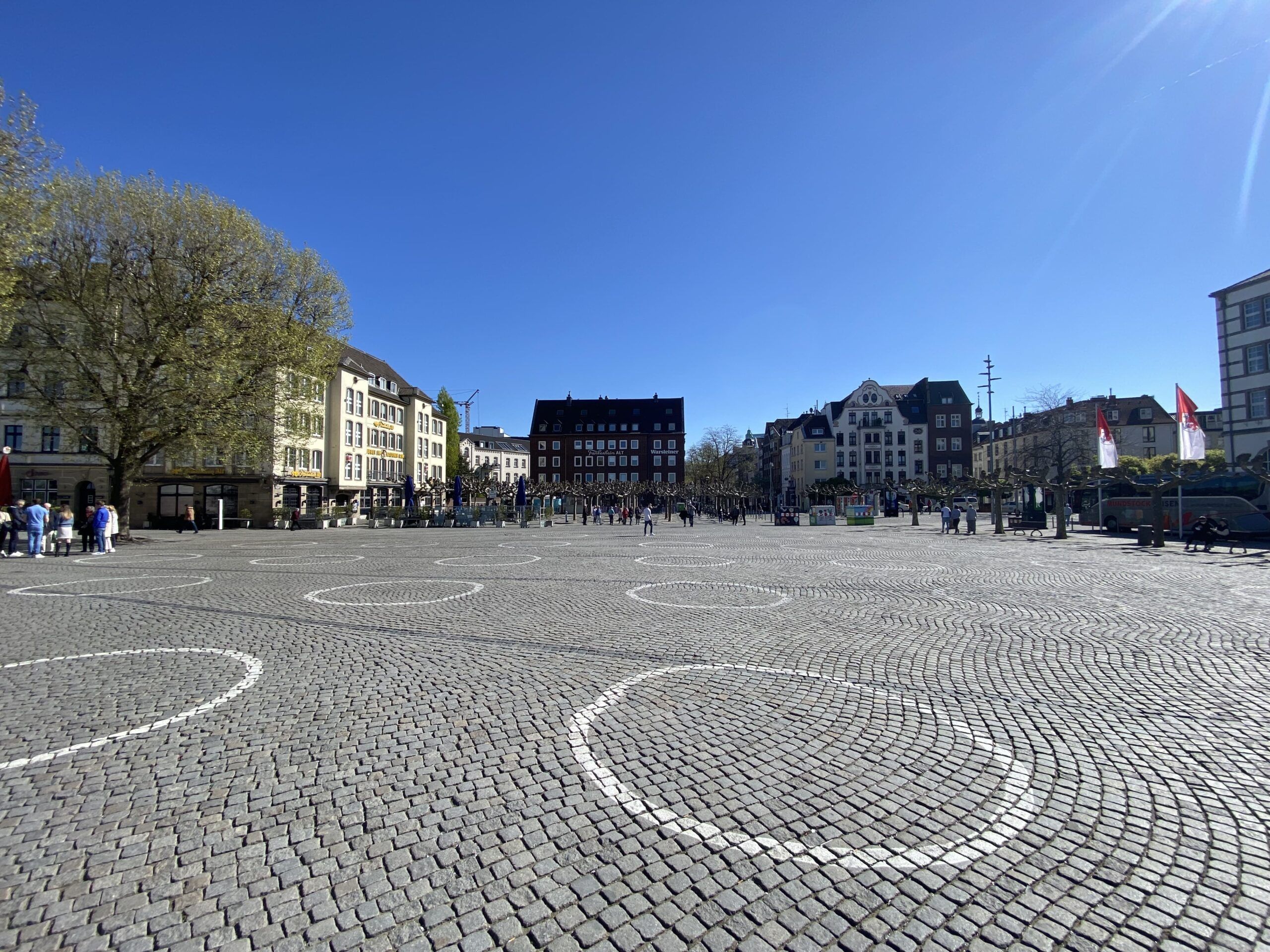 Sí: el centro histórico (Altstadt, Marktplatz, Burgplatz) es muy caminable. Para el Rheinturm también se puede ir a pie siguiendo el Rin; si vas justo de tiempo, transporte público o taxi te recortan el tramo final.