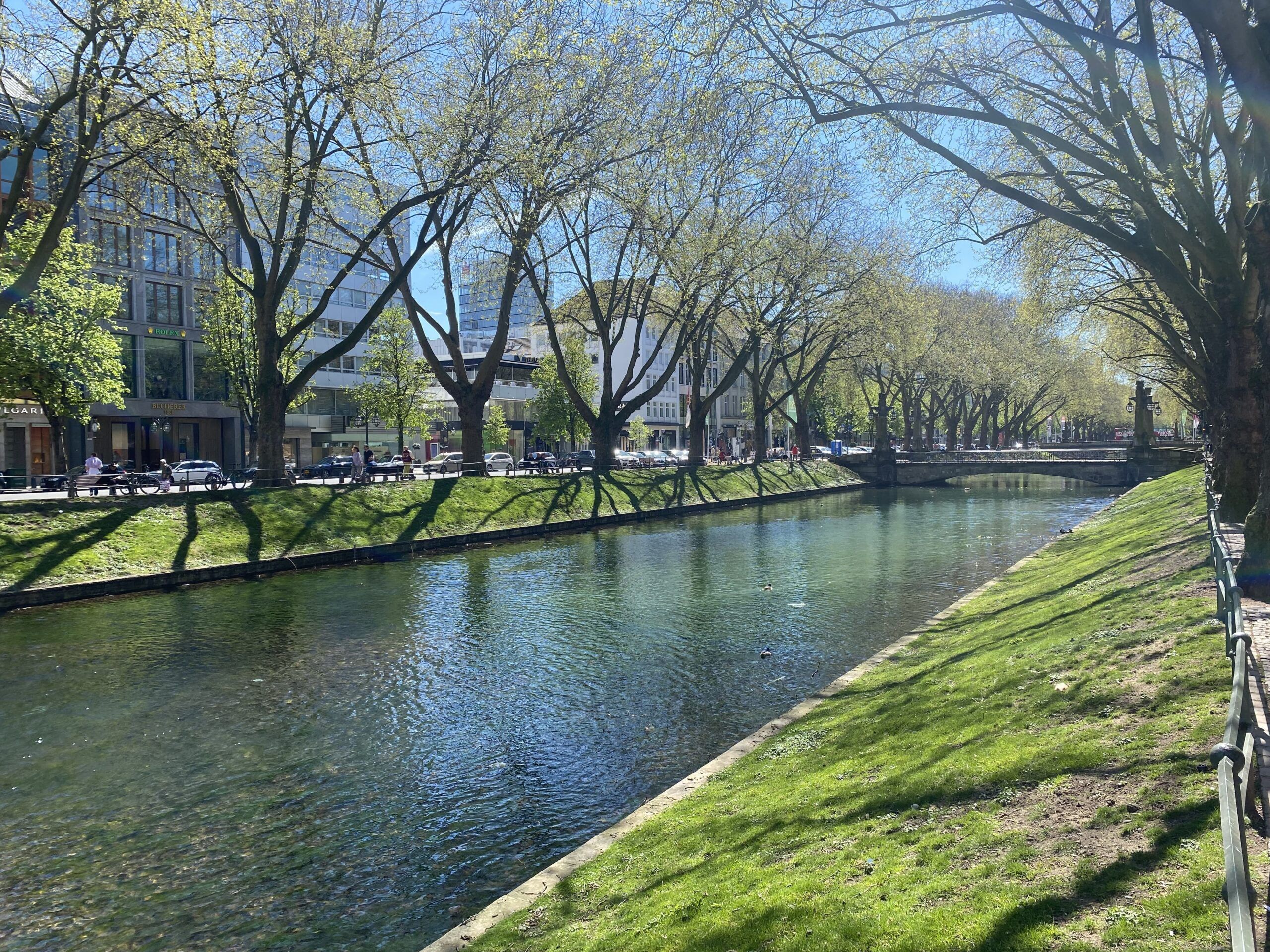 Que es urbanismo con intención: canal, bulevar y escala pensada para pasear. Es la manera más simple de ver cómo Düsseldorf dejó atrás la lógica de fortaleza.