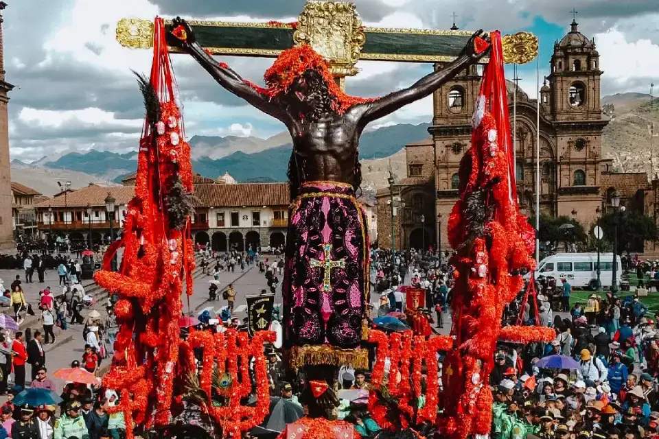 El Cristo de los Temblores, por ejemplo, tiene un culto que combina la devoción católica con ritos prehispánicos. Su color oscuro y su figura protectora ante los terremotos recuerdan a las deidades andinas asociadas a la tierra y la fertilidad. Durante su procesión, los fieles le arrojan flores amarillas de ñucchu, la misma flor que se ofrecía al dios Sol en tiempos del Inca.