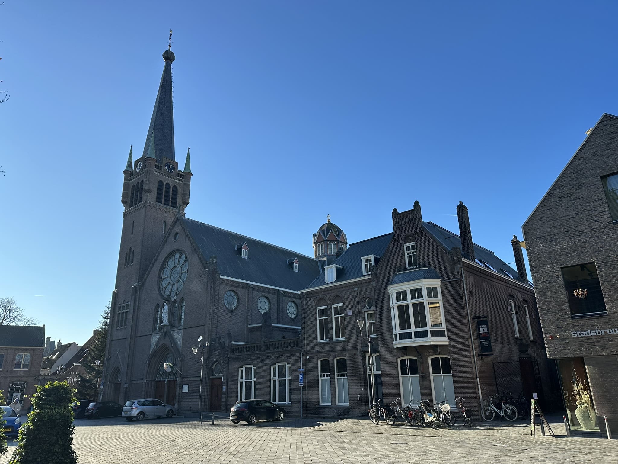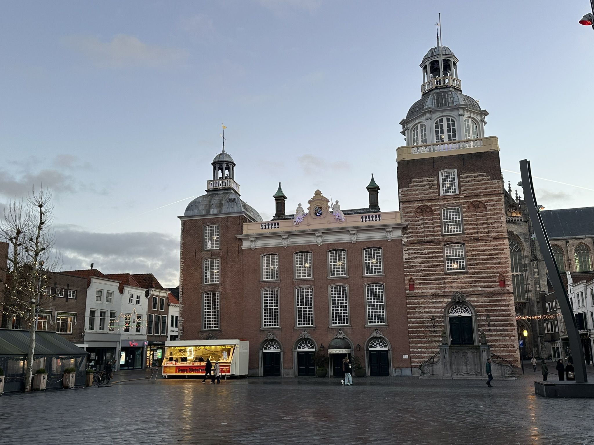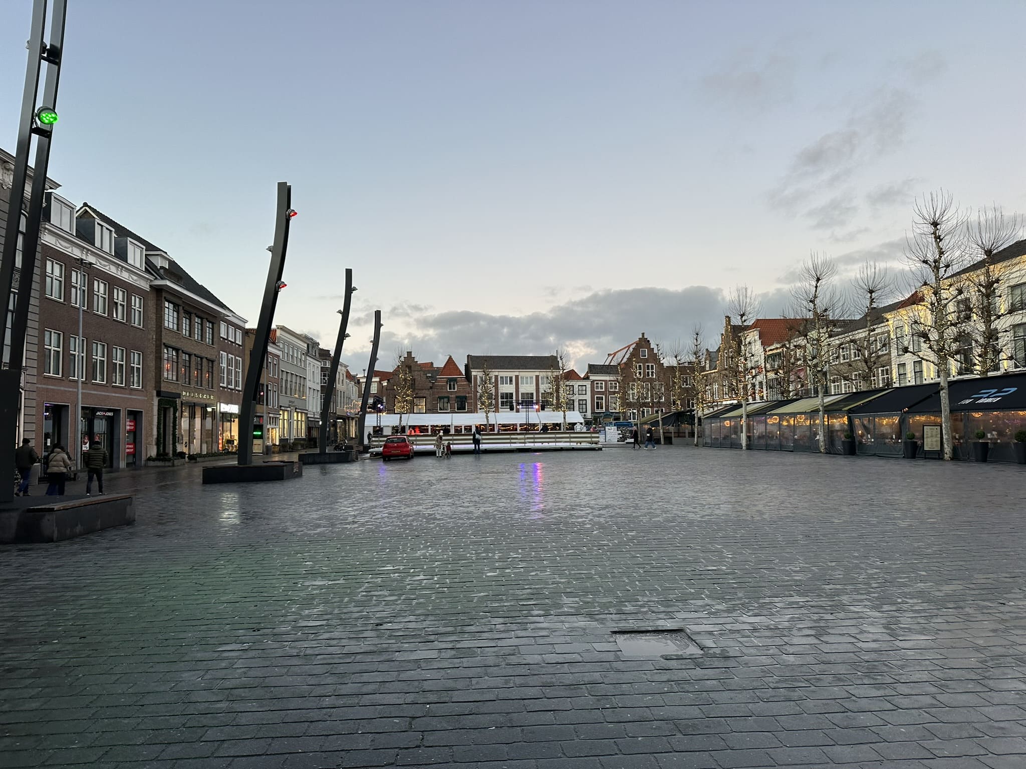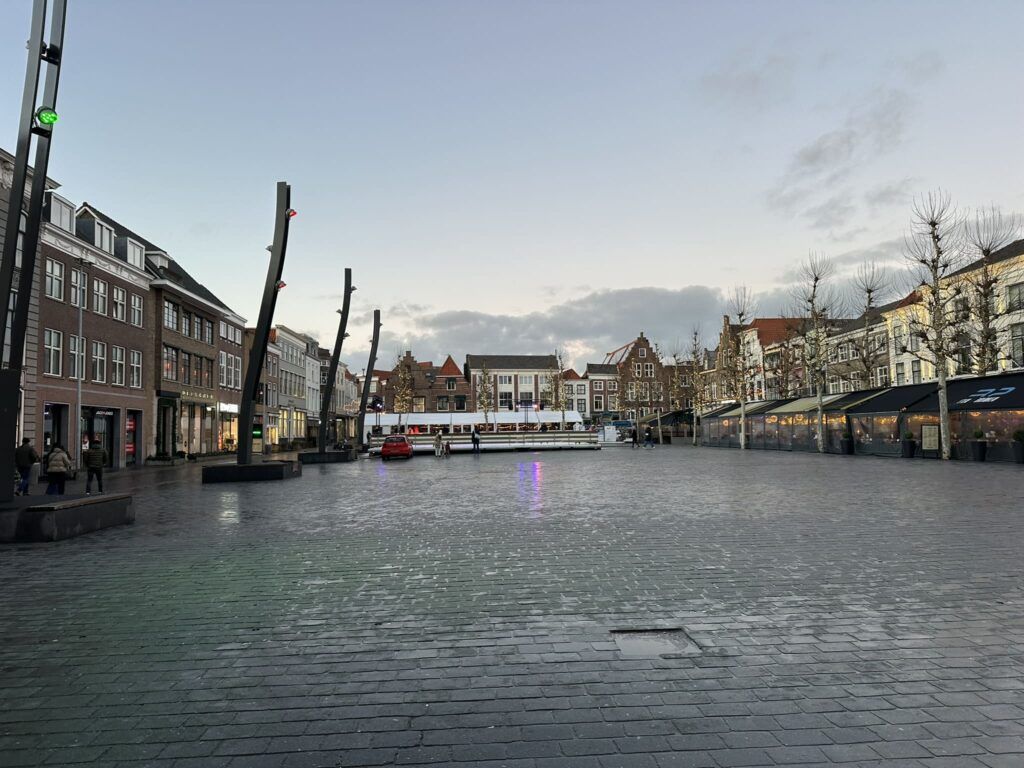 El centro histórico de Goes no abruma. Se recorre fácilmente en una mañana, y eso juega a su favor. La Grote Markt es el eje principal: una plaza amplia, abierta, rodeada de edificios bajos y terrazas que se llenan cuando acompaña el tiempo. No es monumental, pero es equilibrada.