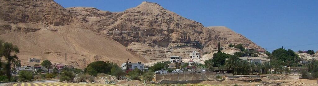 El Monte de la Tentación, conocido también como Monte de la Tentación o Jabal al-Qarantal, se eleva abruptamente al oeste de Jericó, dominando el oasis desde una ladera árida y escarpada. Su silueta es inconfundible: una pared rocosa que parece surgir del desierto como una frontera entre lo fértil y lo ascético.