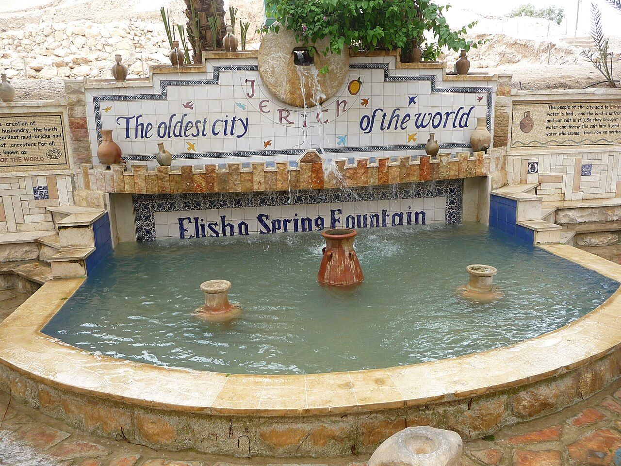 El nombre “Fuente de Eliseo” proviene del episodio bíblico narrado en el Segundo Libro de los Reyes (2 Reyes 2:19-22). Según el relato, las aguas del lugar eran consideradas insalubres y el profeta Eliseo las “purificó” arrojando sal en el manantial. A partir de entonces, el agua quedó sana y fértil. Más allá del elemento milagroso, el texto refleja una realidad: el control del agua era sinónimo de supervivencia y legitimidad espiritual.