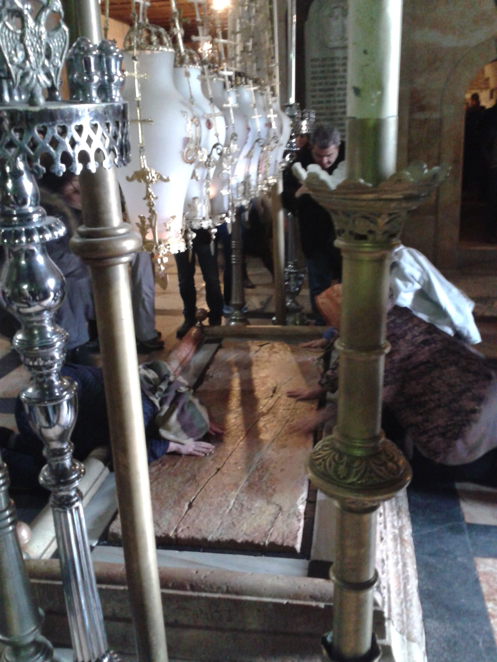 La última estación es quizá la más importante y se identifica con el propio sepulcro de Jesús. Se sitúa en la planta de abajo del Santo Sepulcro, dentro de un edificio tosco y pequeño (8 m de longitud por 5,5m de ancho) justo en el centro de la sala y siempre hay una buena fila de fieles que esperan turno para entrar y tener un pequeño momento de intimidad en el lugar más sagrado para el cristianismo.