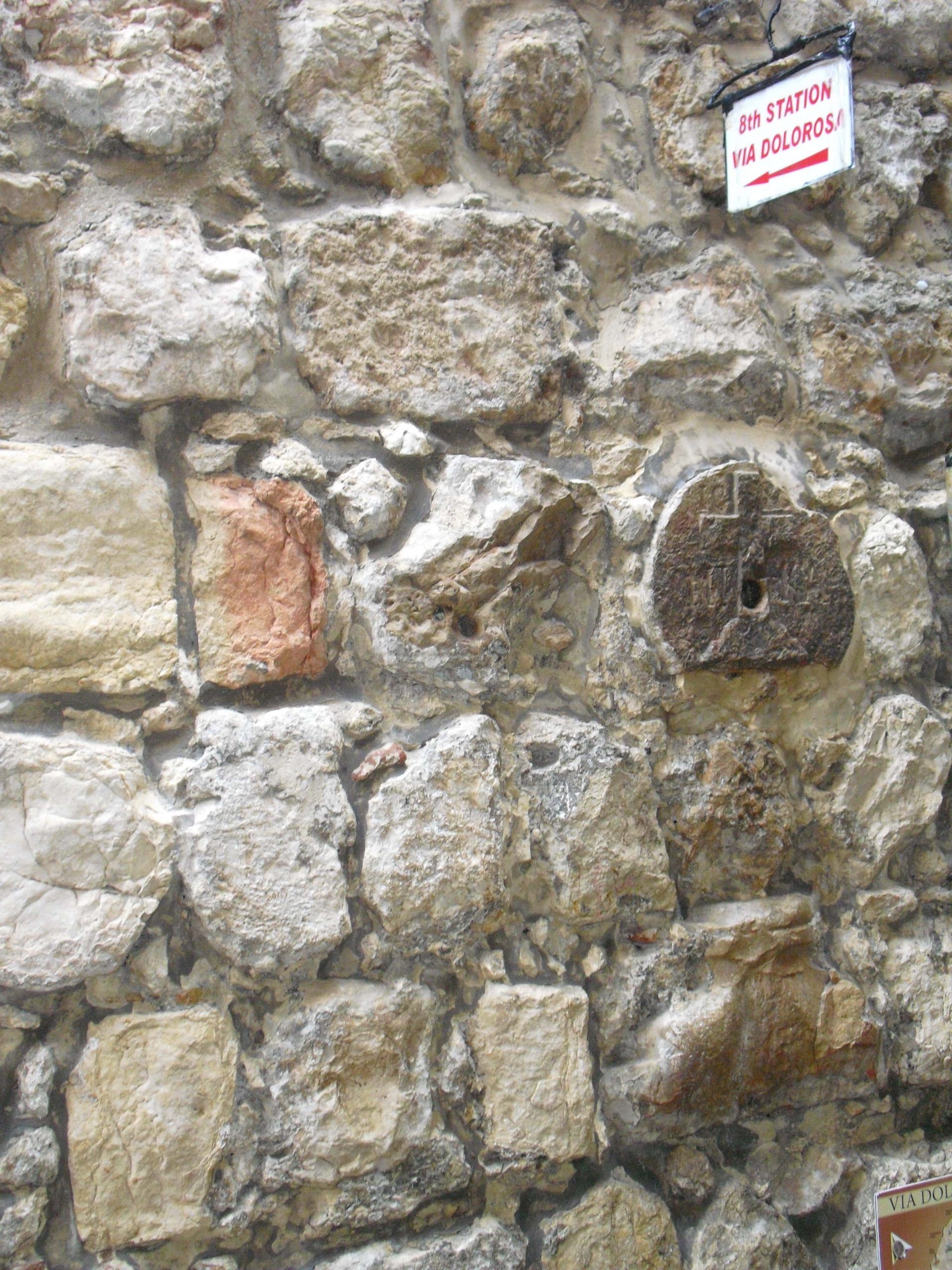 Cerca de la séptima estación y en la pared del monasterio griego, una piedra en forma redondeada con forma de cruz indica el encuentro de Jesús con las mujeres de Jerusalén que señala Lucas 23.