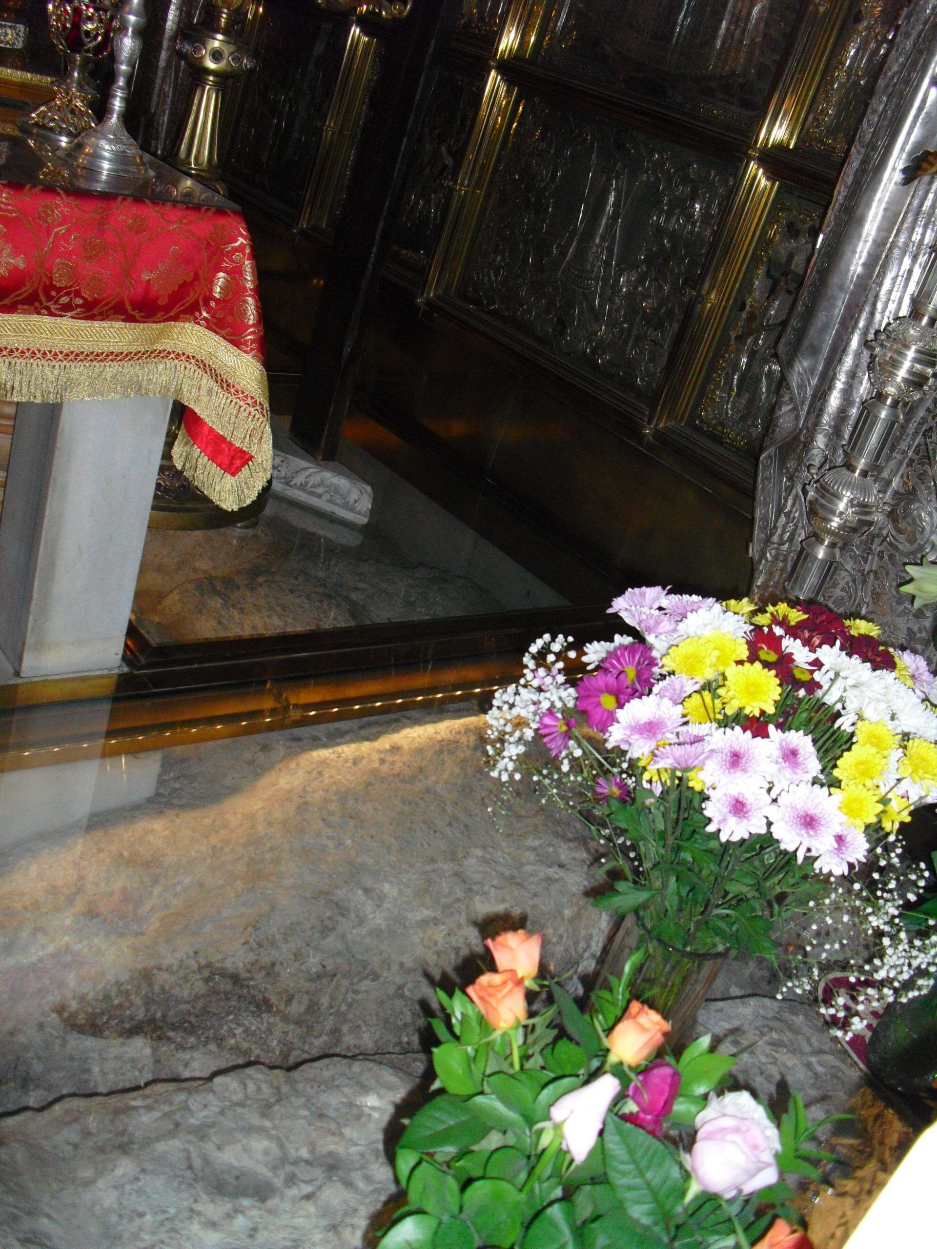Con mayor perspectiva se puede ver el altar griego sobre las rocas del Gólgota a los lados