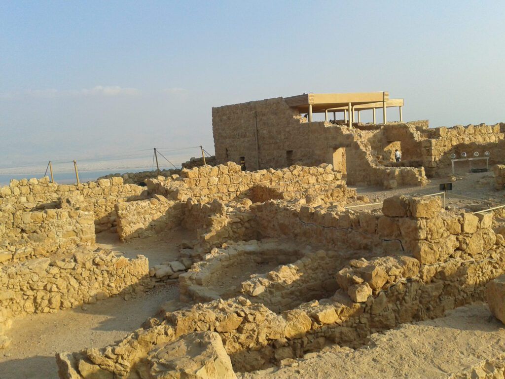 Masada es una fortaleza situada en una meseta aislada junto al Mar Muerto. Fue ampliada como palacio-refugio por Herodes el Grande y se convirtió en el último bastión de la revuelta judía contra Roma (73 d. C.). Es un símbolo histórico de resistencia y tragedia.