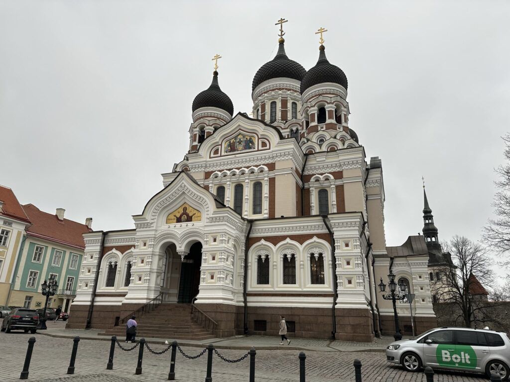 Es imposible no quedarse unos segundos mirando hacia arriba. Su estilo es inconfundiblemente ruso, con mosaicos coloridos y cruces doradas que contrastan con la sobriedad germánica de las iglesias luteranas cercanas. Fue construida a finales del siglo XIX, cuando Estonia estaba bajo el dominio del Imperio ruso, y no es casualidad: la levantaron justo frente al castillo de Toompea, sede del poder político, como una demostración de fuerza y presencia zarista.