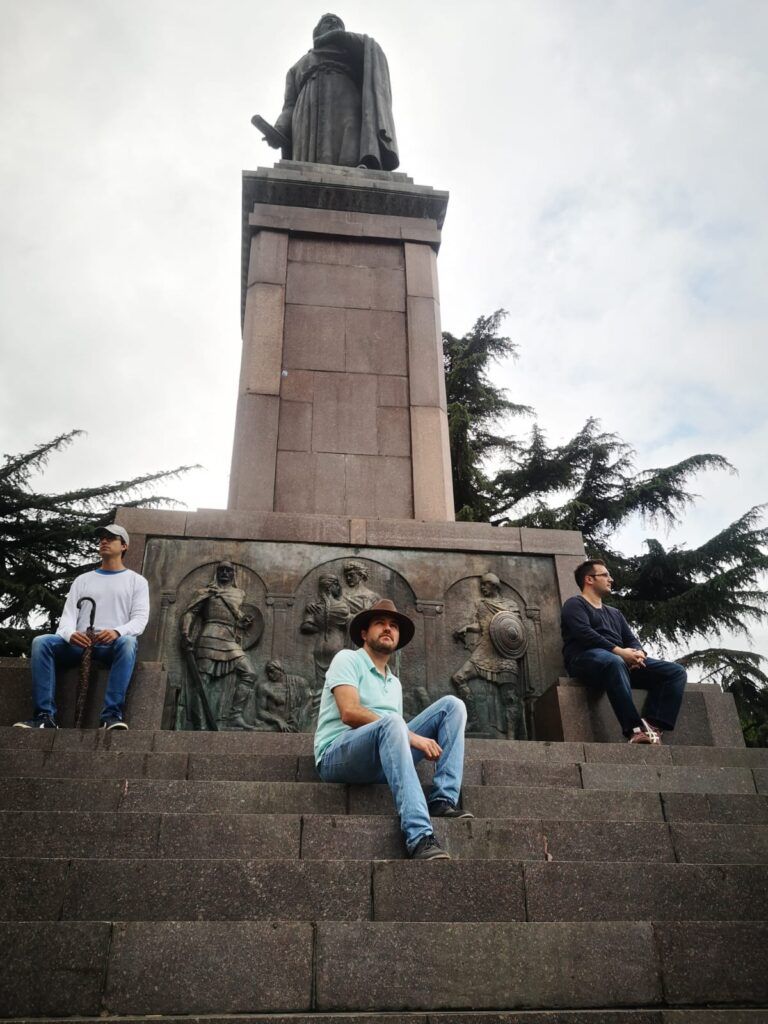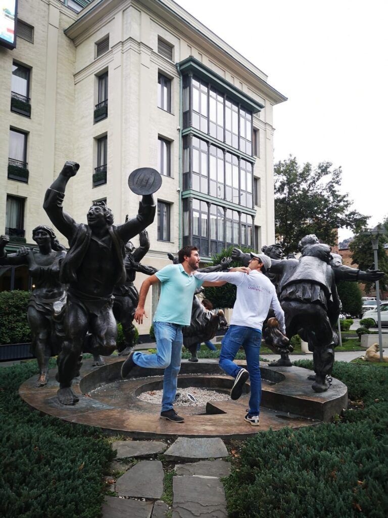 Otro de los conjuntos escultóricos más llamativos es Berikaoba, un grupo de figuras que representan la danza popular georgiana del mismo nombre. Con gestos exagerados, máscaras y mucho movimiento, transmiten la alegría festiva del país. Muchos visitantes, al igual que tú en tu foto, imitan sus poses para conseguir una imagen divertida que captura el espíritu de la escultura.