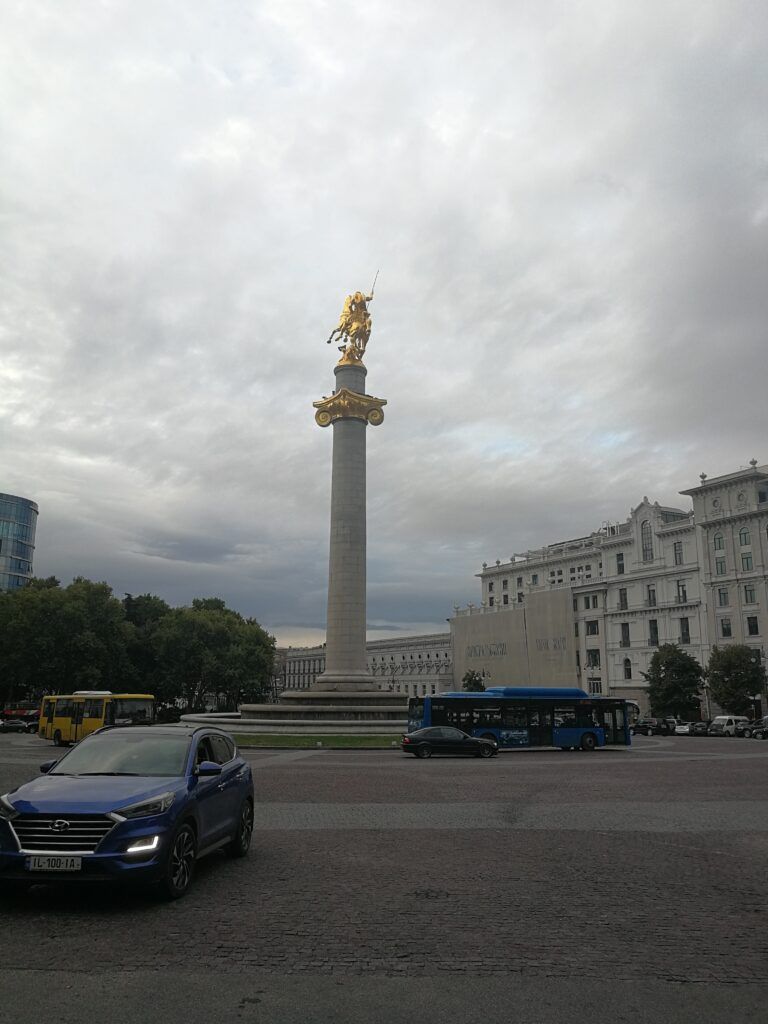 El San Jorge de la Plaza de la Libertad no es solo una figura religiosa: representa la lucha del pueblo georgiano por su libertad e independencia a lo largo de los siglos, en especial frente a los imperios que dominaron el Cáucaso (persas, otomanos, rusos y soviéticos).