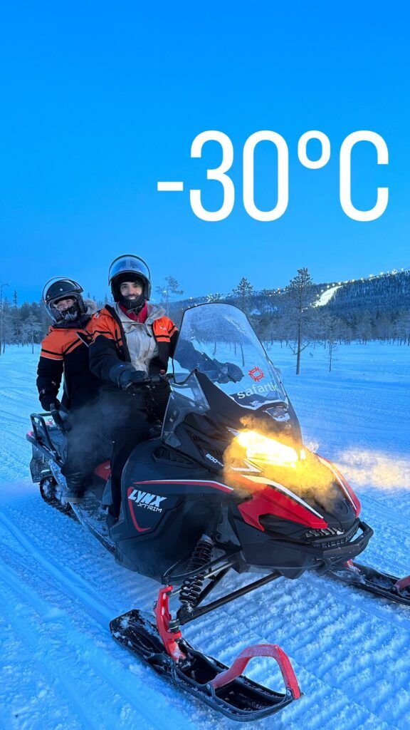 El precio es también caro (superior a los 100 EUR el año pasado) y tienes que hacerlo vía agencia local. Más info: Snowmobiling Quick Spin – 2 h snowmobile experience – Safartica.