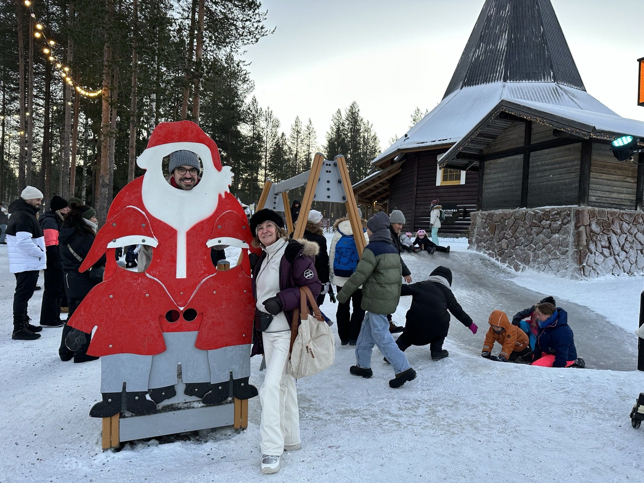 Santa Claus Village vive en una frontera delicada. Es turístico, sin duda. Pero no es estridente. No hay música constante ni animadores persiguiéndote. La nieve amortigua el sonido, la luz es suave, y el diseño del espacio evita la saturación visual.