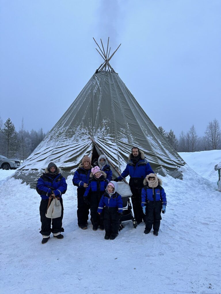 La familia con el lavvu o tipi