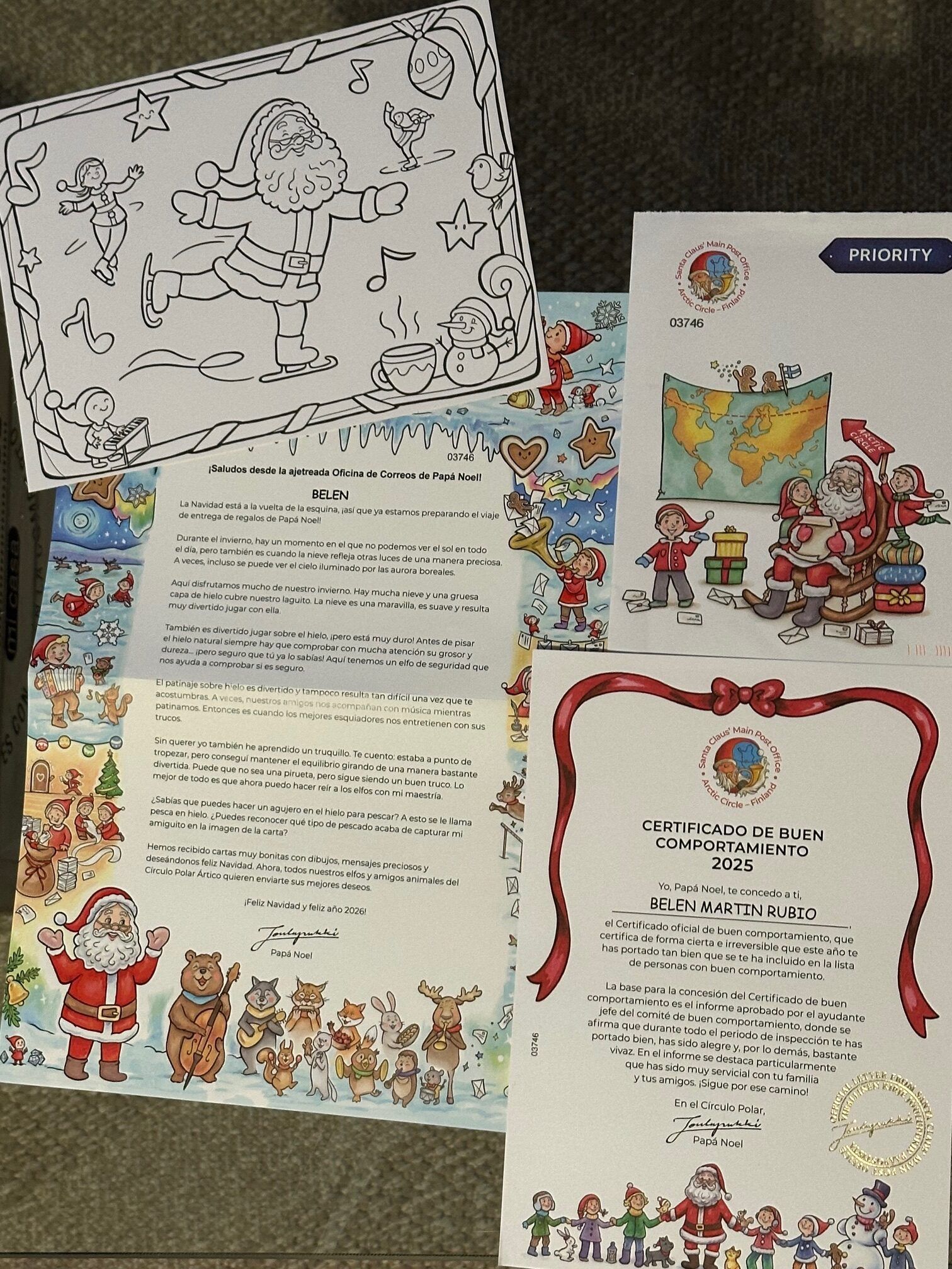 Una opción muy interesante es rellenar un formulario para que Papá Noel te escriba personalmente (o a quien quieras) antes de la llegada de la siguiente Navidad. Aquí cada año te sorprende con algo distinto. Cuando fui por primera vez, enviaba calendarios y una carta donde mostraba lo que hacía cada día del año. Este último año ha enviado una carta, un dibujo y certificado de buen comportamiento. Es sinceramente uno de los mejores detalles que puedes tener con los niños e incluso con algún padre ilusionado.