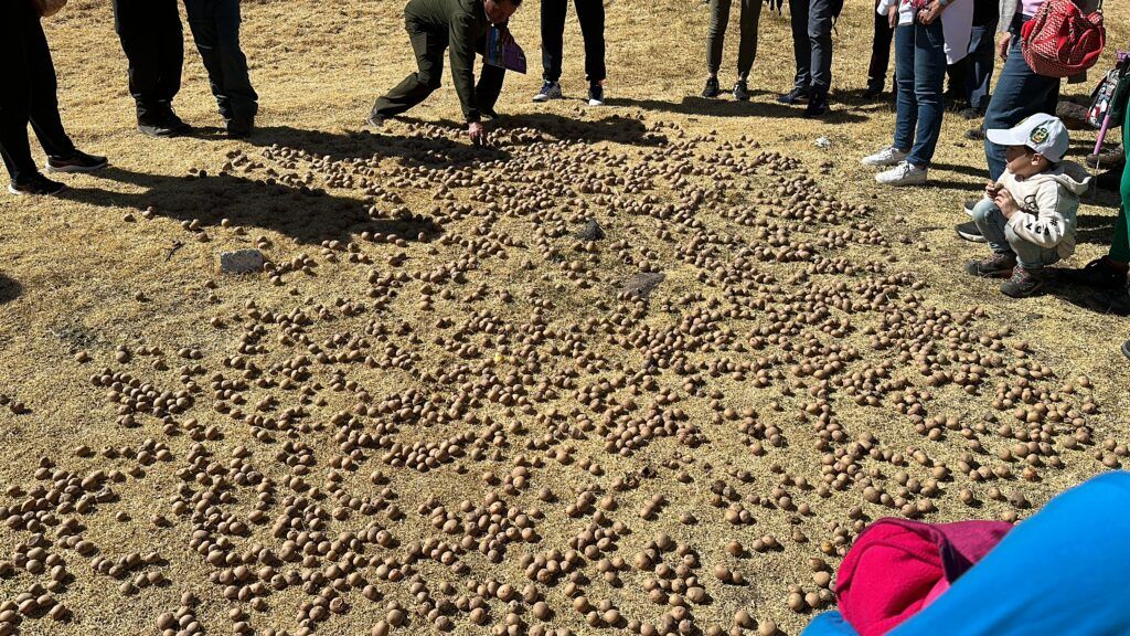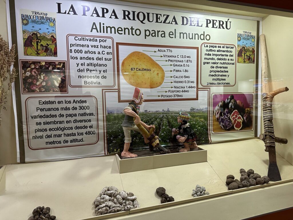 Antes de partir al autobús, nos hicieron un despliegue de patatas en el suelo. Parece que el propósito es que pasara la noche congeladas. Esto se debe a que cuando se congela el tubérculo, empieza a sudar agua, hasta que se seca (podemos ayudar aplastándolo). Una vez seco se almacena. En ese estado pueden estar 15-20 aós hasta que decides ponerle agua de nuevo y se rehidratan (tecnología andina lo llaman).