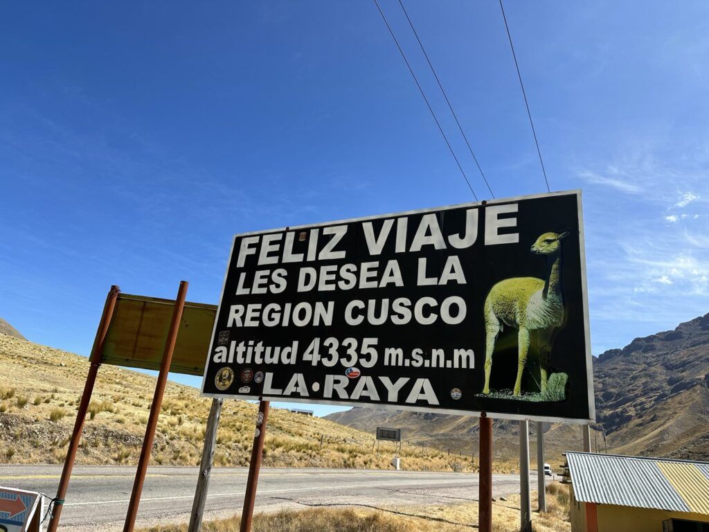 El viaje atraviesa la meseta del Collao, un altiplano que supera los 3.800 metros de altura, pasando por comunidades campesinas, llamas y alpacas pastando, y picos nevados de la cordillera de los Andes. El punto más alto es el abra La Raya, a 4.335 metros, frontera natural entre las regiones de Puno y Cusco, y donde realizamos una parada estratégica.