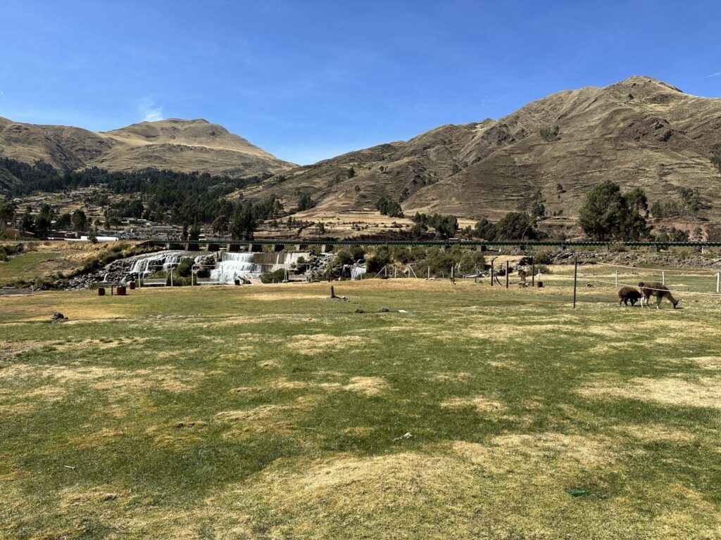 El sitio arqueológico se levanta en un entorno natural de gran belleza, rodeado por montañas, campos de cultivo y el río Vilcanota, que pasa a pocos metros y formaba parte del sistema sagrado del agua.