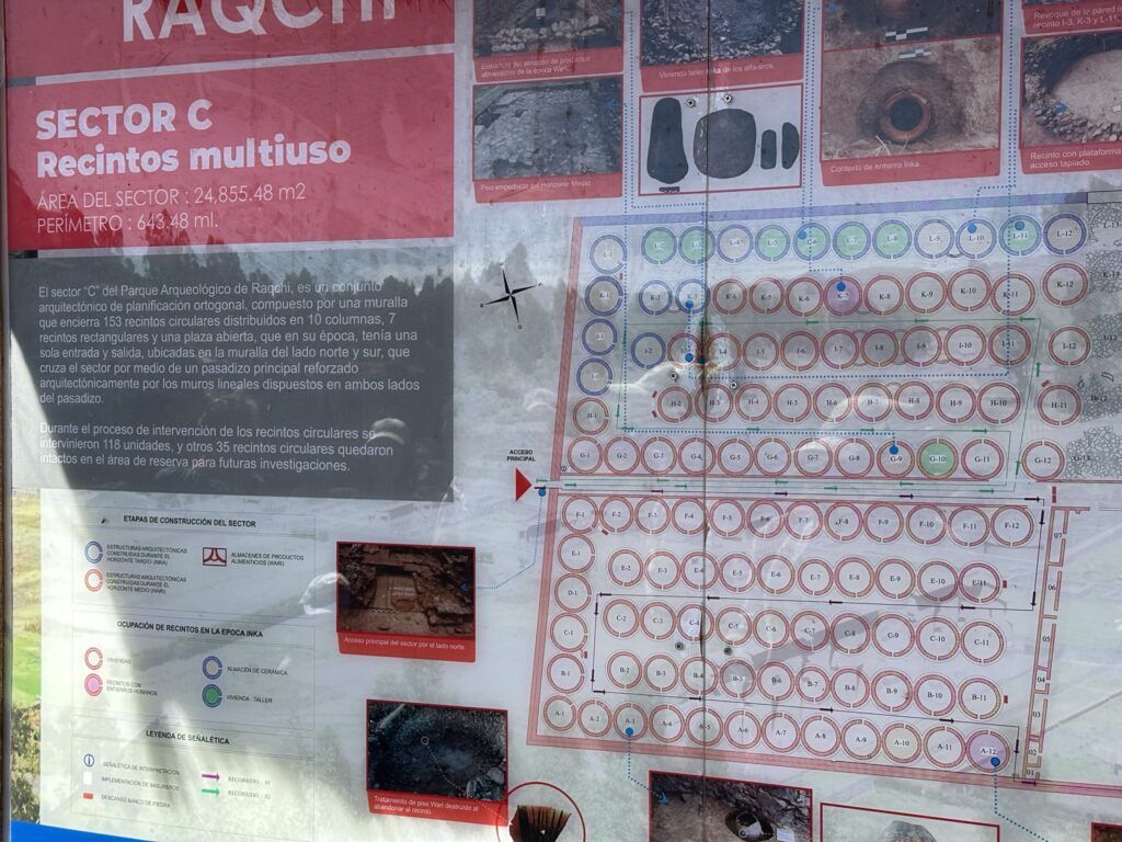 Raqchi no es solo el templo; es un extenso conjunto con diversas zonas funcionales que muestran la complejidad del urbanismo inca: