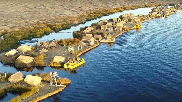 Estas islas forman uno de los asentamientos más singulares del mundo: un conjunto de islas flotantes construidas íntegramente con totora, una planta acuática abundante en el Lago Titicaca. Este archipiélago artificial es el hogar del pueblo Uro, una de las comunidades más antiguas del altiplano andino, que desarrolló estas islas como refugio natural frente a otros pueblos más poderosos. La estructura de cada isla se basa en bloques de raíces de totora unidos entre sí y recubiertos por capas de tallos secos, un sistema que exige mantenimiento constante y que demuestra la estrecha relación entre los Uros y el ecosistema del lago.