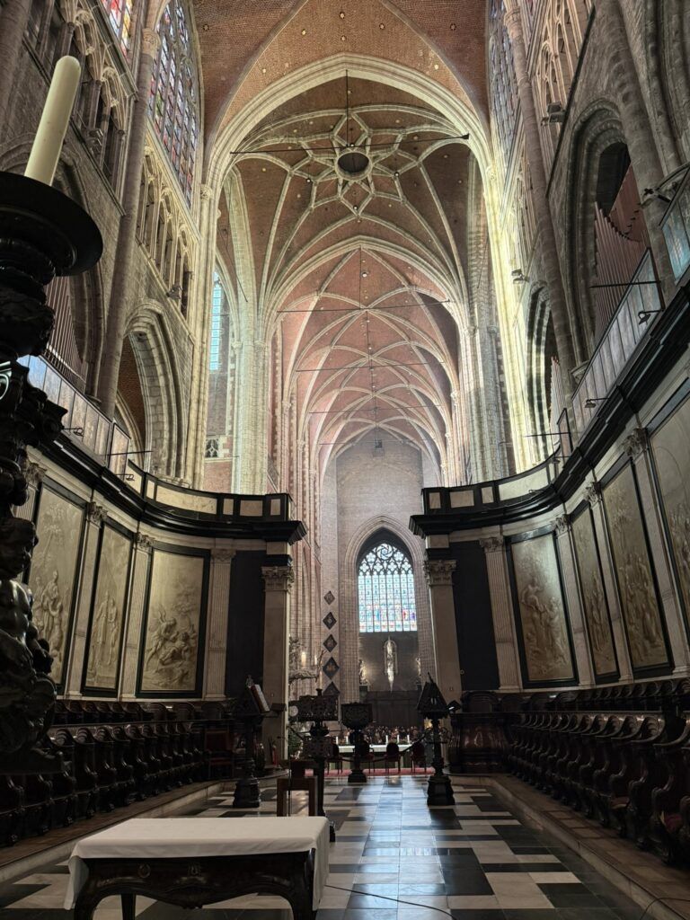 El lugar ya era importante antes de que existiera la catedral tal y como la vemos hoy. En el siglo X se consagra aquí una primera iglesia dedicada a San Juan Bautista y en el SXII se levanta sobre ella una iglesia románica. Con el paso de los siglos ese edificio se transforma, y una parte de esa etapa temprana todavía está “viva” bajo tus pies: la cripta. Cuando bajas, cambia la escala y cambia el tiempo. La piedra parece más tosca, el espacio se vuelve más recogido y casi sientes que estás en el Gante más antiguo, el de los inicios, cuando las iglesias eran menos monumentales. Esa cripta es clave porque te recuerda que el gótico que ves arriba se levantó sobre una memoria arquitectónica anterior, la románica.