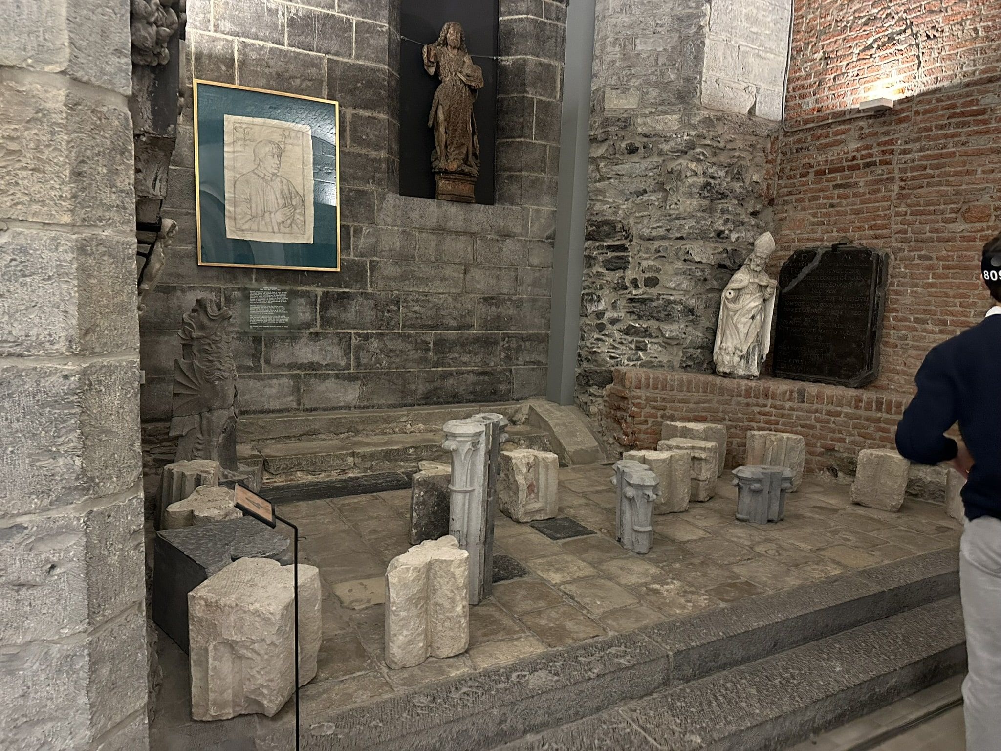 Como hemos comentado, la cripta de San Bavón es el lugar donde la catedral te enseña su edad de verdad: bajas unos escalones y, de golpe, el gótico luminoso de arriba se convierte en un espacio más bajo, más denso, casi subterráneo, donde sobreviven los rastros de la iglesia románica del siglo XII sobre la que se levantó el templo posterior.