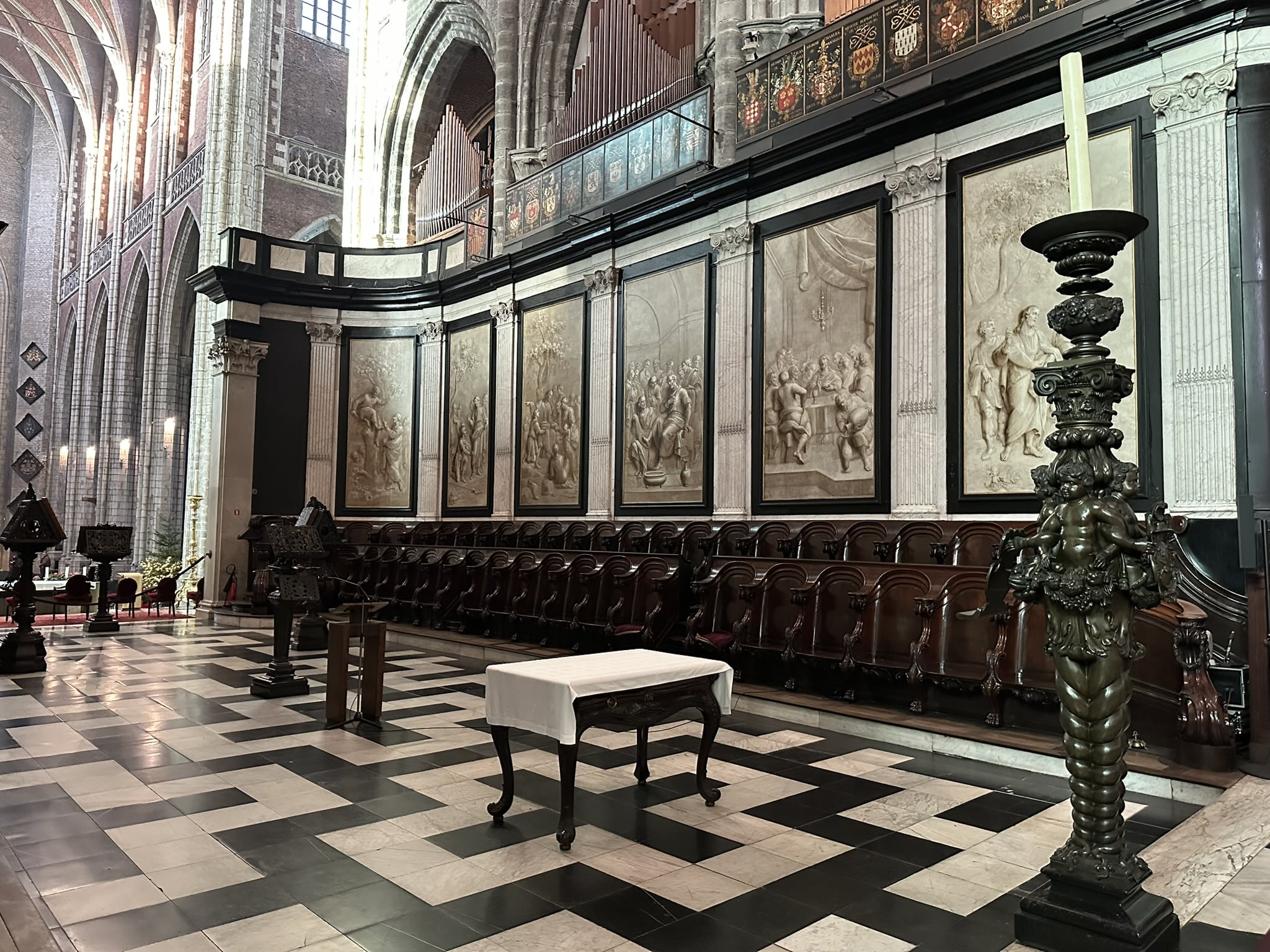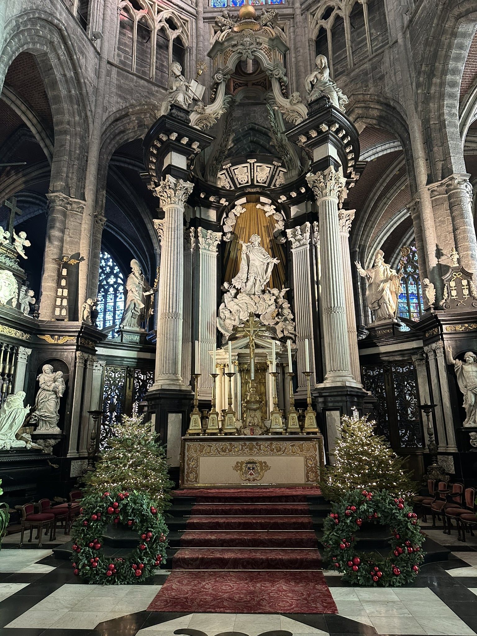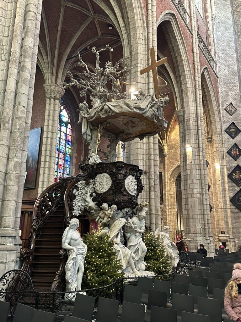El púlpito monumental de Laurent Delvaux es una increíble obra del arte rococó. Llama la atención el contraste entre el roble oscuro y el mármol blanco, y la teatralidad con el se concibe esta obra, por contra del estilo sobrio gótico que predomina en la catedral.