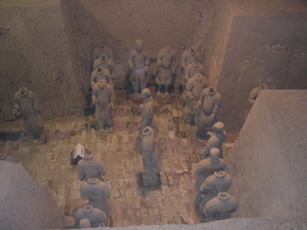 El ejército se encontraba en túneles de madera. Éstos a su vez estaban separados en galerías por terraplenes, es decir, no estaba todo el ejército seguido, sino que se iba dividiendo en galerías. Se techó con madera, encima esteras y tierra prensada, quedando las figuras ordenadas a cinco metros de profundidad.