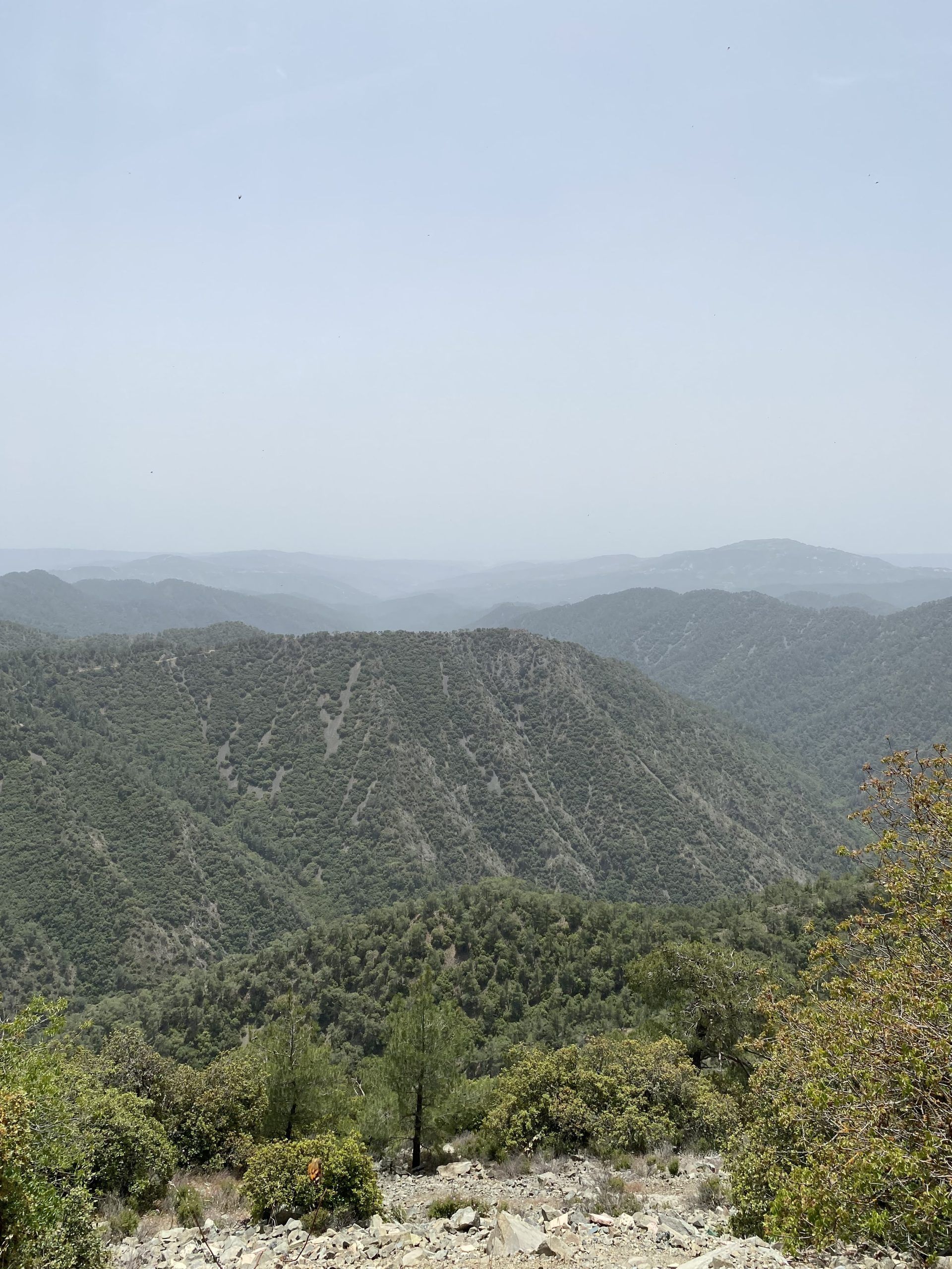 Salimos de la localidad de Paphos, lugar donde residía nuestro “campo base” al suroeste de la isla. Nos adentramos en los Troodos a través de un bosque seco pero frondoso. Las carreteras aun sinuosas, están en buen estado. Y la poca circulación de vehículos te ayuda con la conducción al revés. He de destacar que el paisaje me recordaba mucho a paisajes del interior de España.