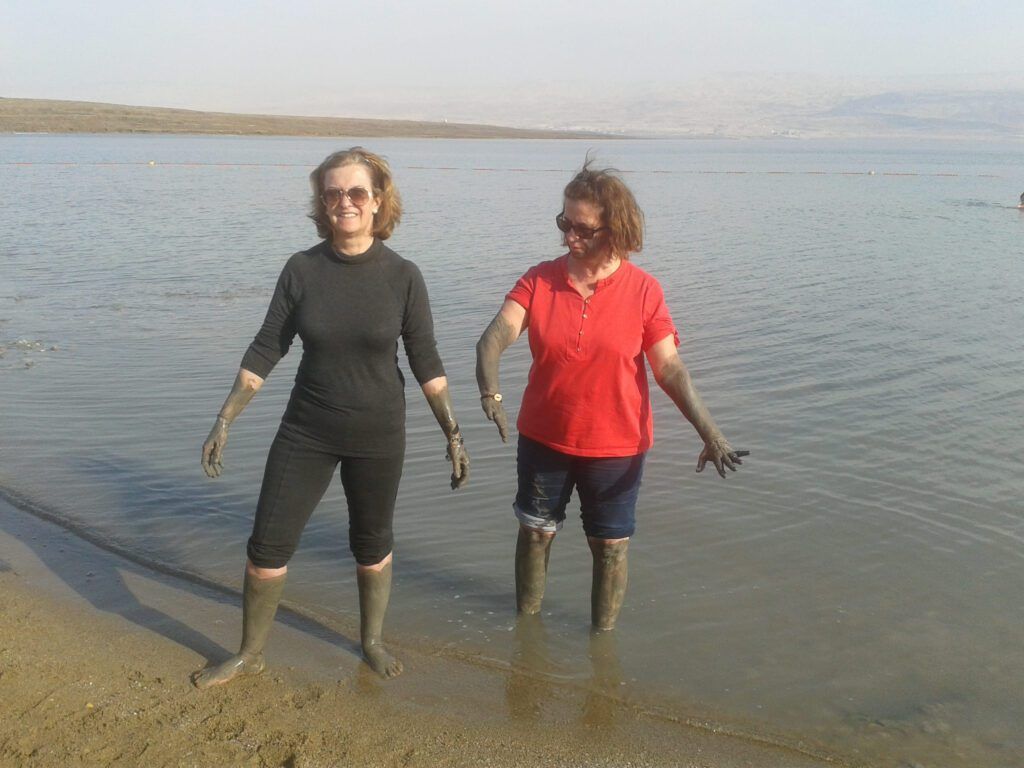 Mi madre y mi tía no quisieron bañarse y optaron por disfrutar de las propiedades del barro del Mar Muerto. Lo único malo era después, tener la paciencia y el tiempo para quitarse el barro una vez terminado.