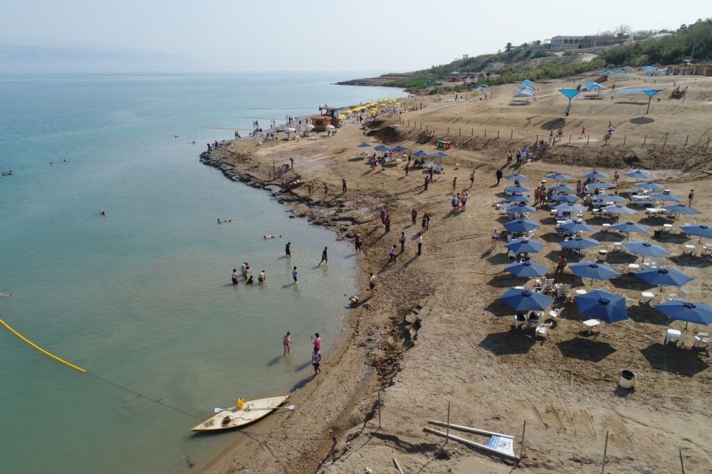 El acceso es de pago, mediante una entrada individual que permite el uso de las instalaciones durante el día. El precio suele incluir aparcamientos, vestuarios, duchas con agua dulce, aseos, zonas de sombra y acceso directo al lago a través de pasarelas. No es una playa de lujo, pero sí práctica y cómoda para una primera experiencia en el Mar Muerto sin necesidad de alojarse en un resort.