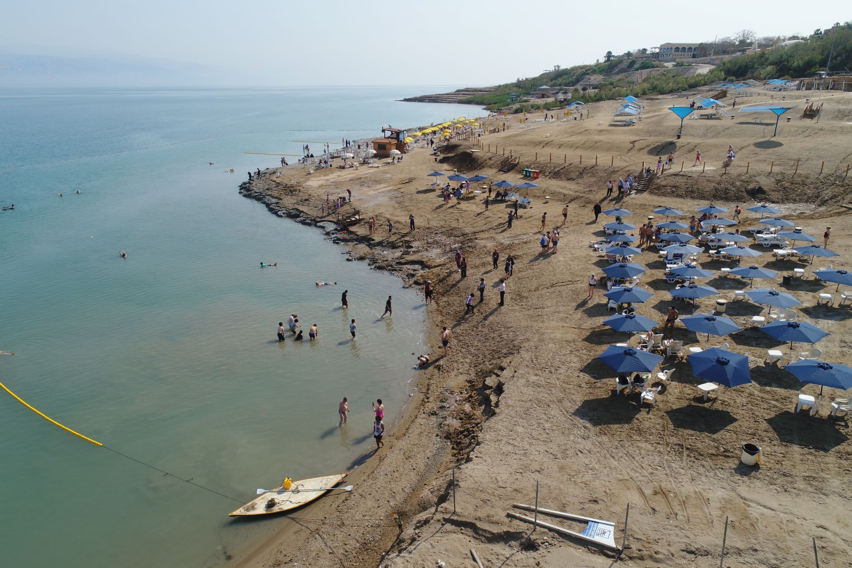 Kalia Beach es una de las playas organizadas más accesibles del Mar Muerto, situada en la orilla norte, dentro del kibutz Kalia, en el territorio de Cisjordania bajo administración israelí. A diferencia de tramos naturales o zonas hoteleras privadas, funciona como playa pública gestionada, con servicios básicos bien resueltos y un ambiente tranquilo, frecuentado tanto por locales como por viajeros independientes.